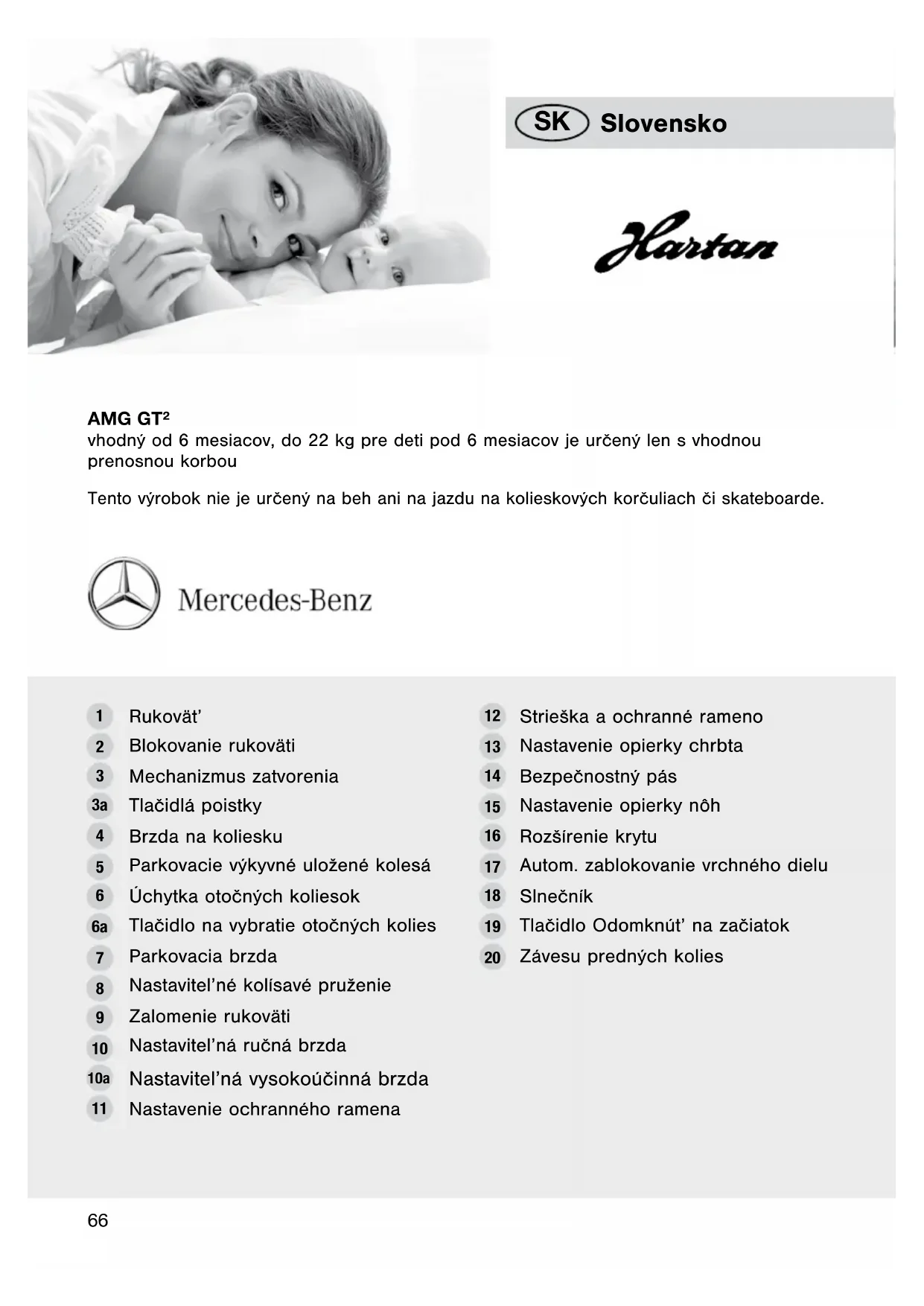 AMG GT² vhodný od 6 mesiacov, do 22 kg pre deti pod 6 mesiacov je určený len s vhodnou prenosnou korbou Tento výrobok nie je určený na beh ani na jazdu na kolieskových korčuliach či skateboarde.