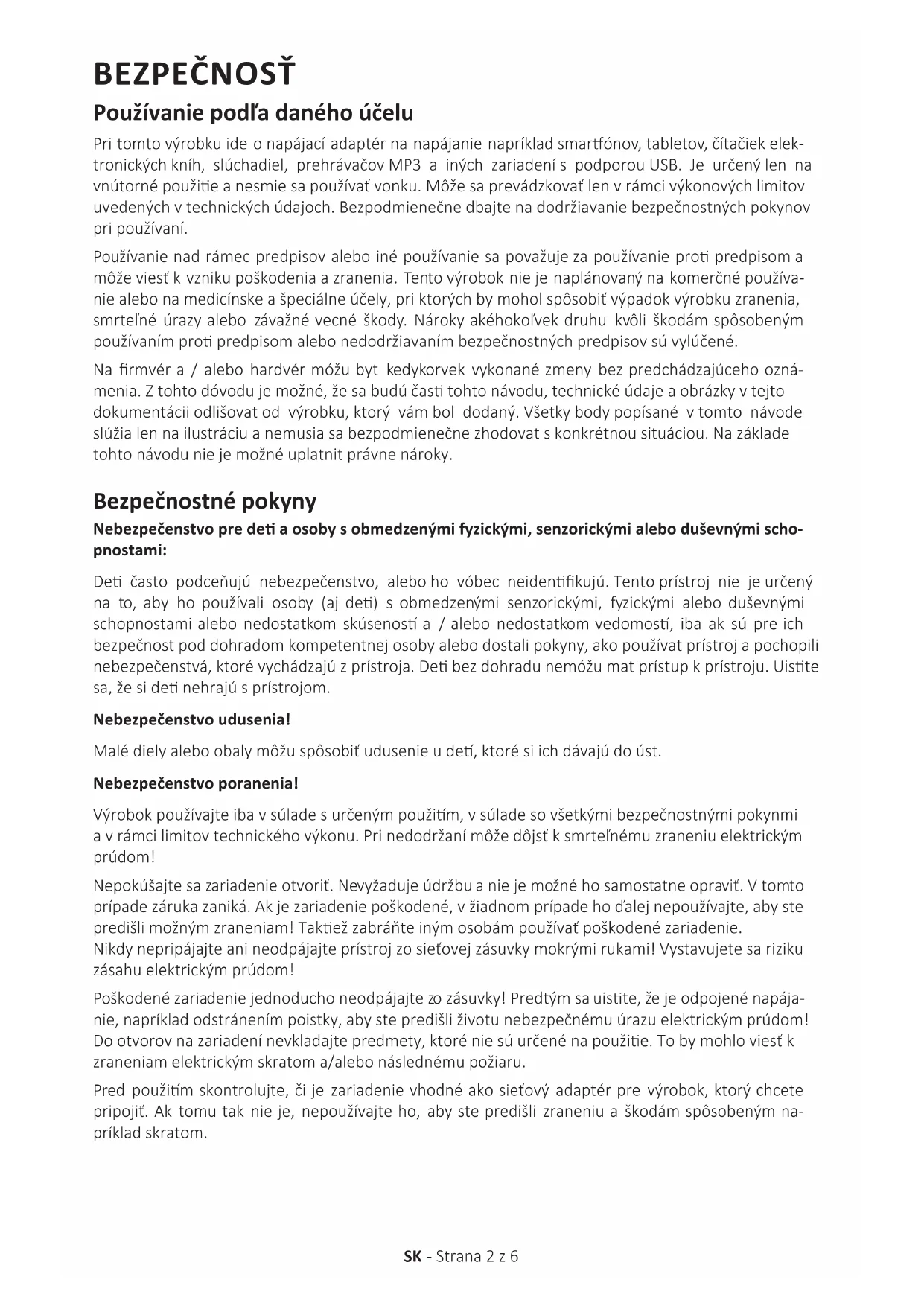 - Bezpečnostné pokyny p. 2