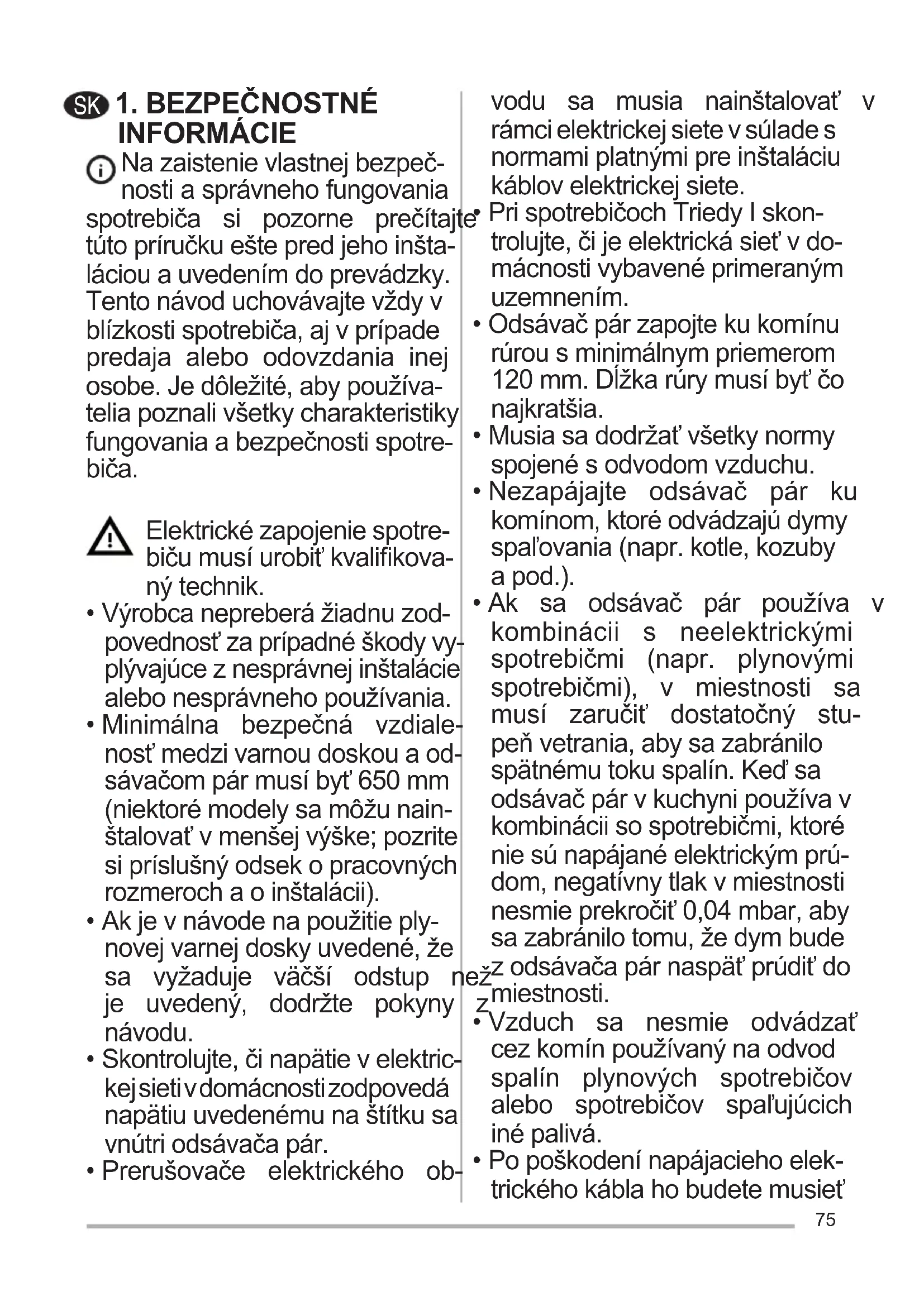- Nezapájajte odsávač pár ku komínom,ktoréodvádzajúdymy spaľovania(napr.kotle,kozuby a pod.).
