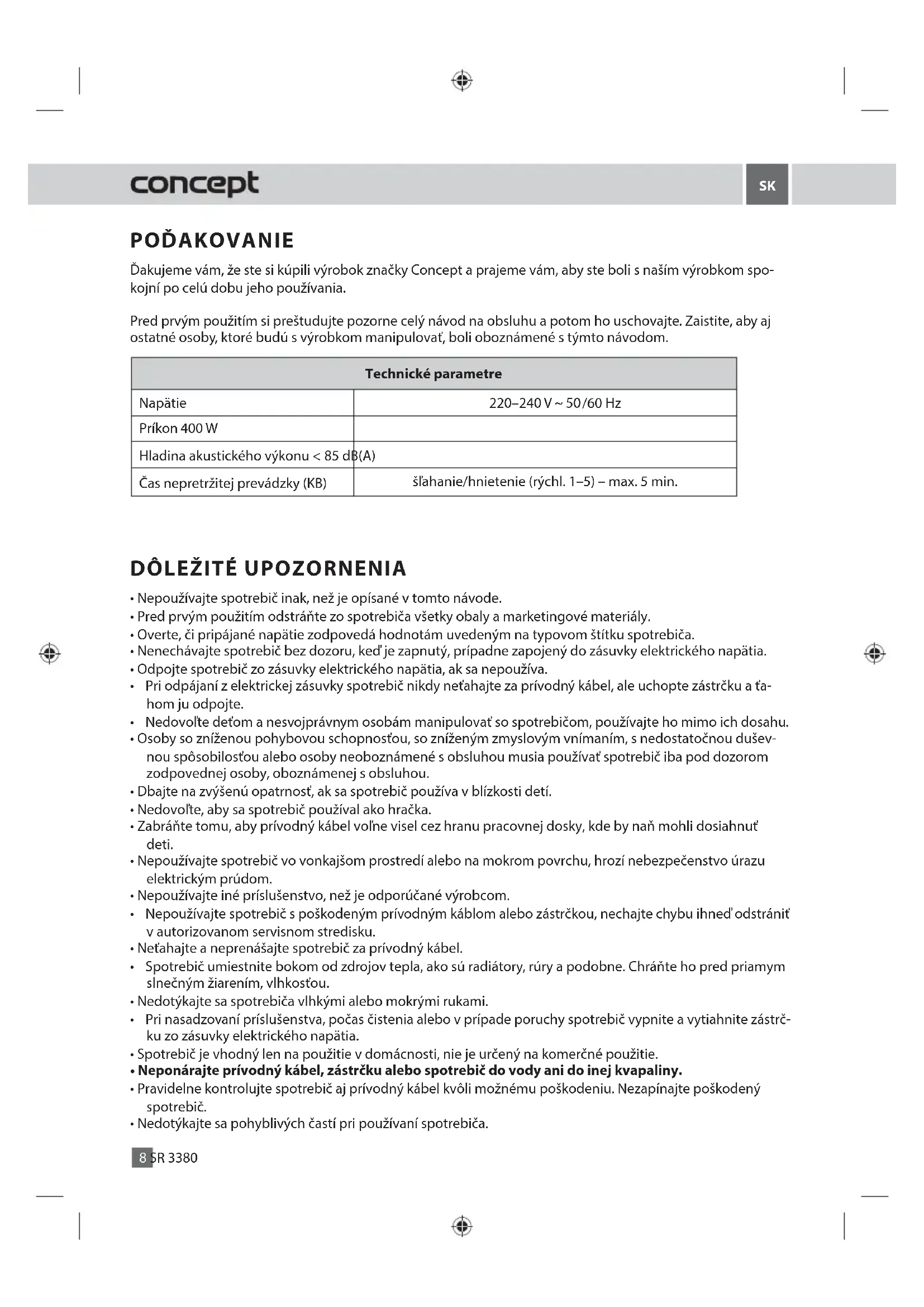 NÁVOD NA OBSLUHU SR3380 Concept