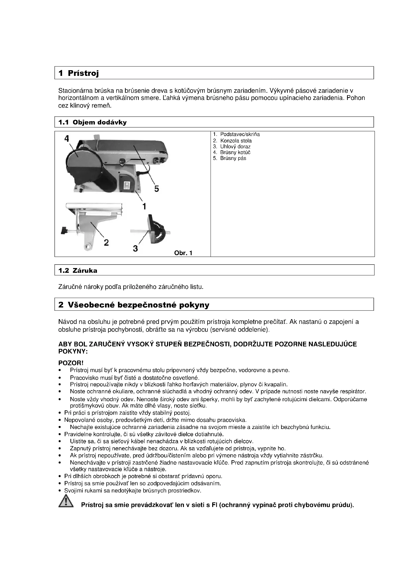 Záručné nároky podľa priloženého záručného listu. 2 Všeobecné bezpečnostné pokyny Návod na obsluhu je potrebné pred prvým použitím prístroja kompletne prečítať. Ak nastanú o zapojení a obsluhe prístroja pochybnosti, obráťte sa na výrobcu (servisné oddelenie). ABY BOL ZARUČENÝ VYSOKÝ STUPEŇ BEZPEČNOSTI, DODRŽUJTE POZORNE NASLEDUJÚCE POKYNY: POZOR!
