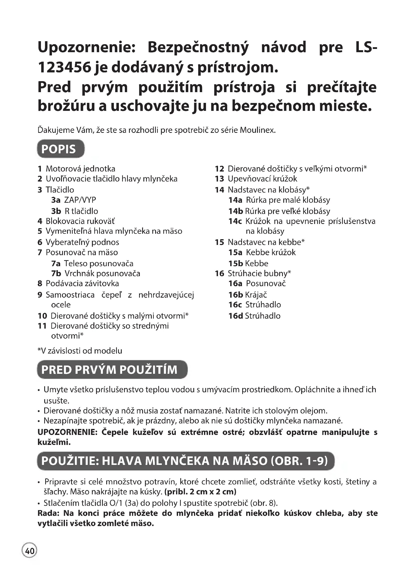 ME546810 - Mlynček na mäso MOULINEX - Bezplatný návod na obsluhu