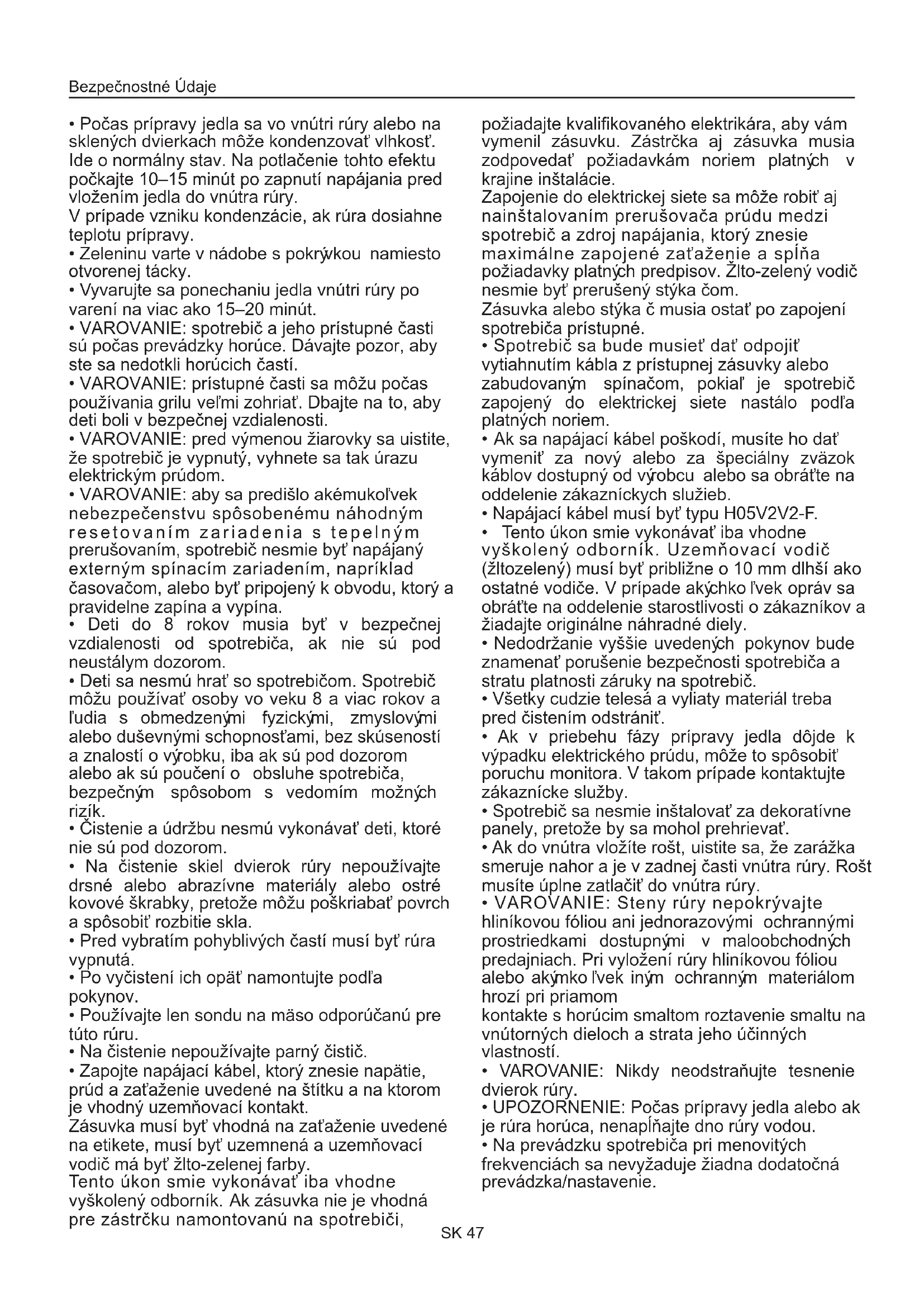 - Ak v priebehu fázy prípravy jedla dôjde k výpadku elektrického prúdu, môže to spôsobiť poruchu monitora. V takom prípade kontaktujte zákaznícke služby.SK 48 Zhrnutie Čistenie a údržba rúry Všeobecné pokyny