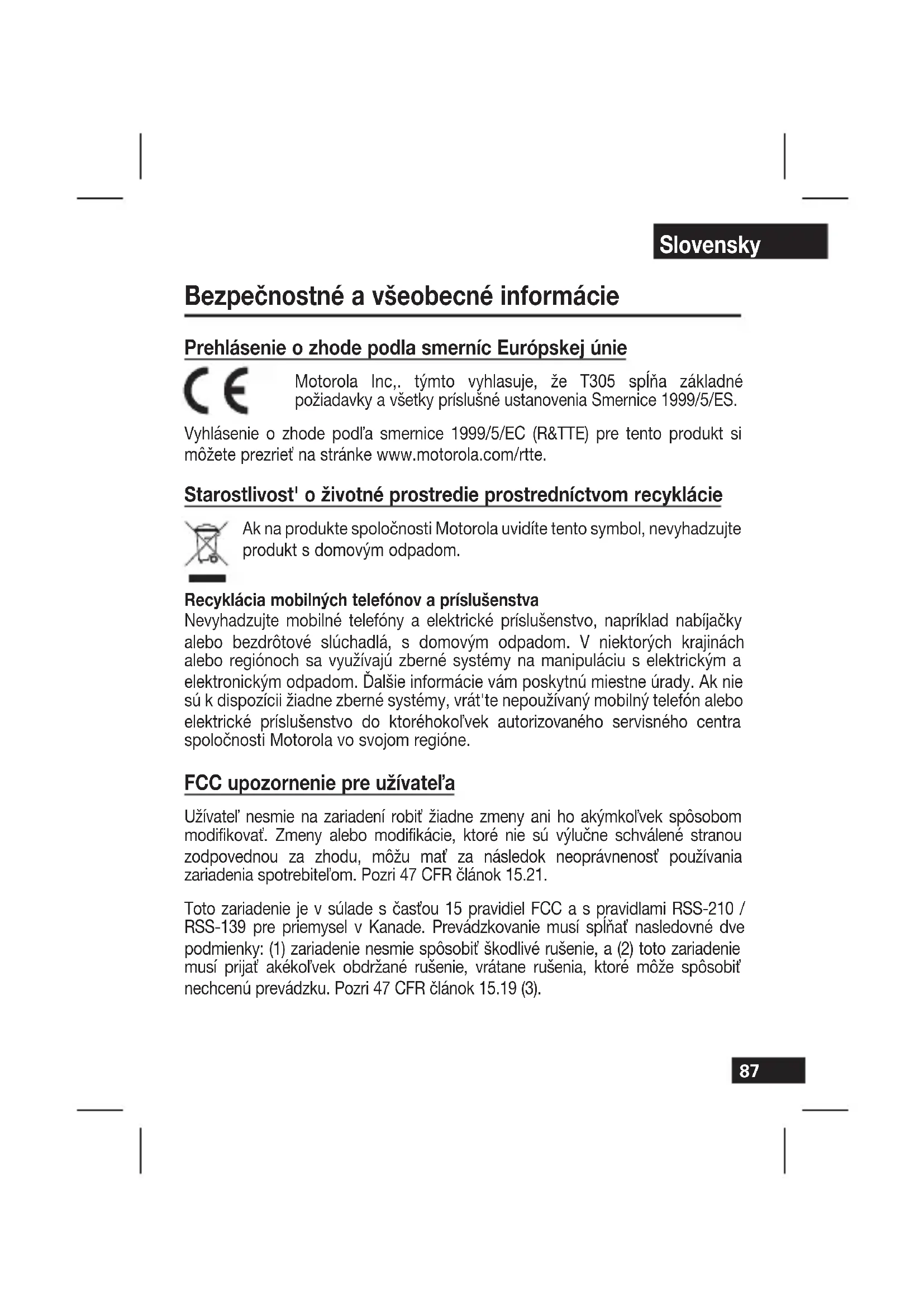 NÁVOD NA OBSLUHU T305 MOTOROLA