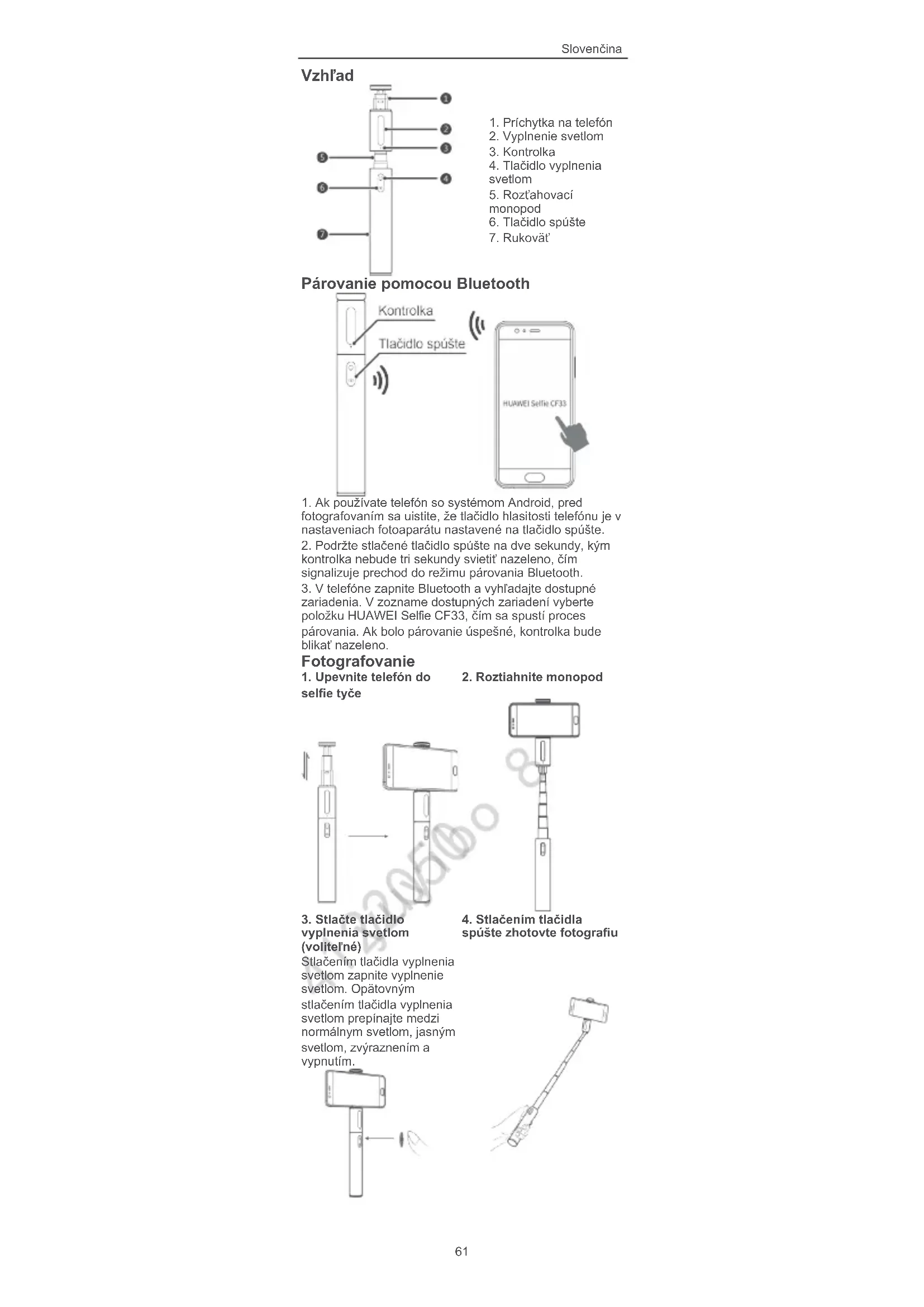 Nájdite návod k zariadeniu zdarma Selfie Stick HUAWEI vo formáte PDF.