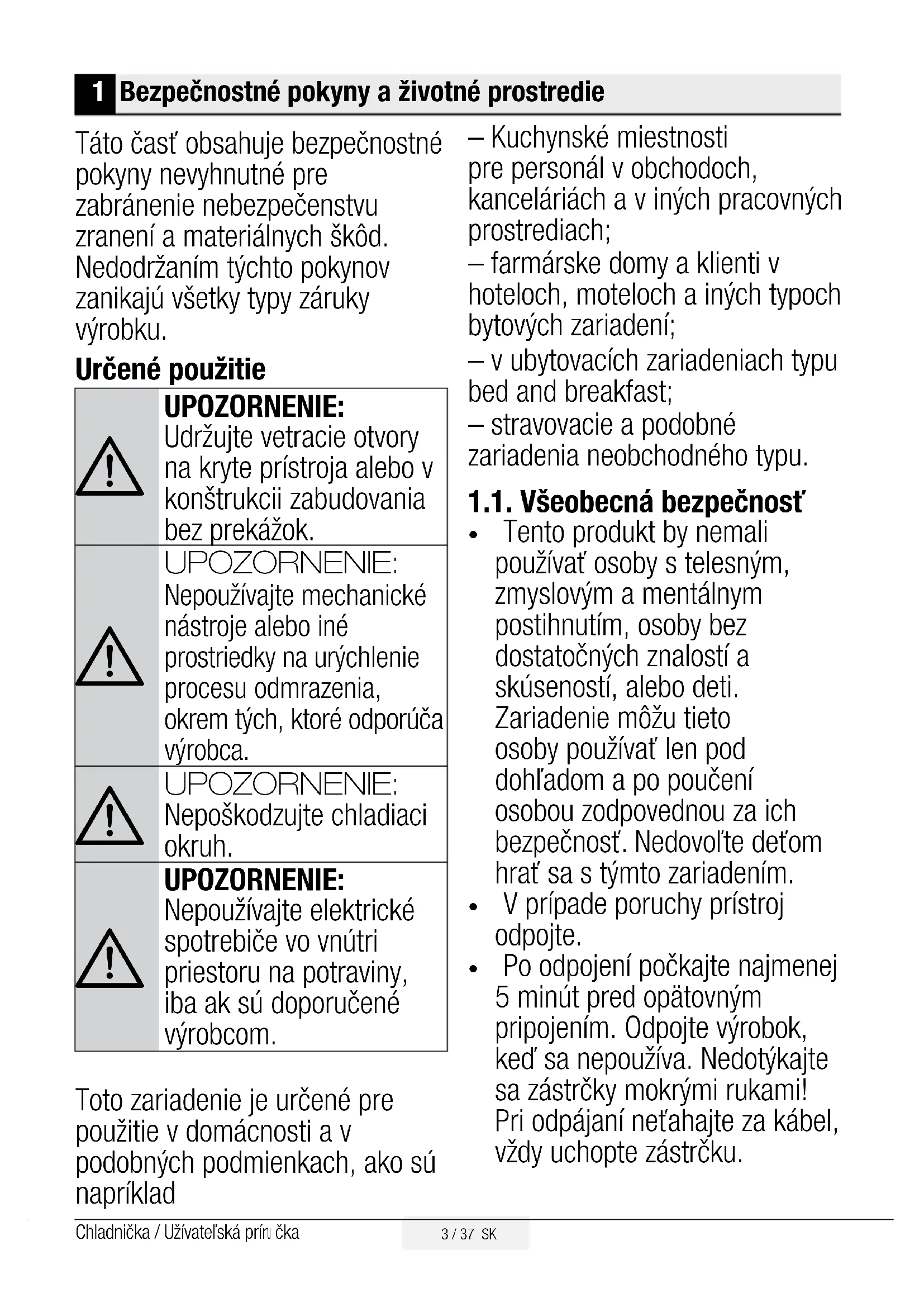 INFORMATION C2 / 37 SK Chladnička / Užívateľská príru čka 1 Bezpečnostné pokyny a životné prostredie 3 1.1. Všeobecná bezpečnosť . . . . . . . . . . . . . . . . 3