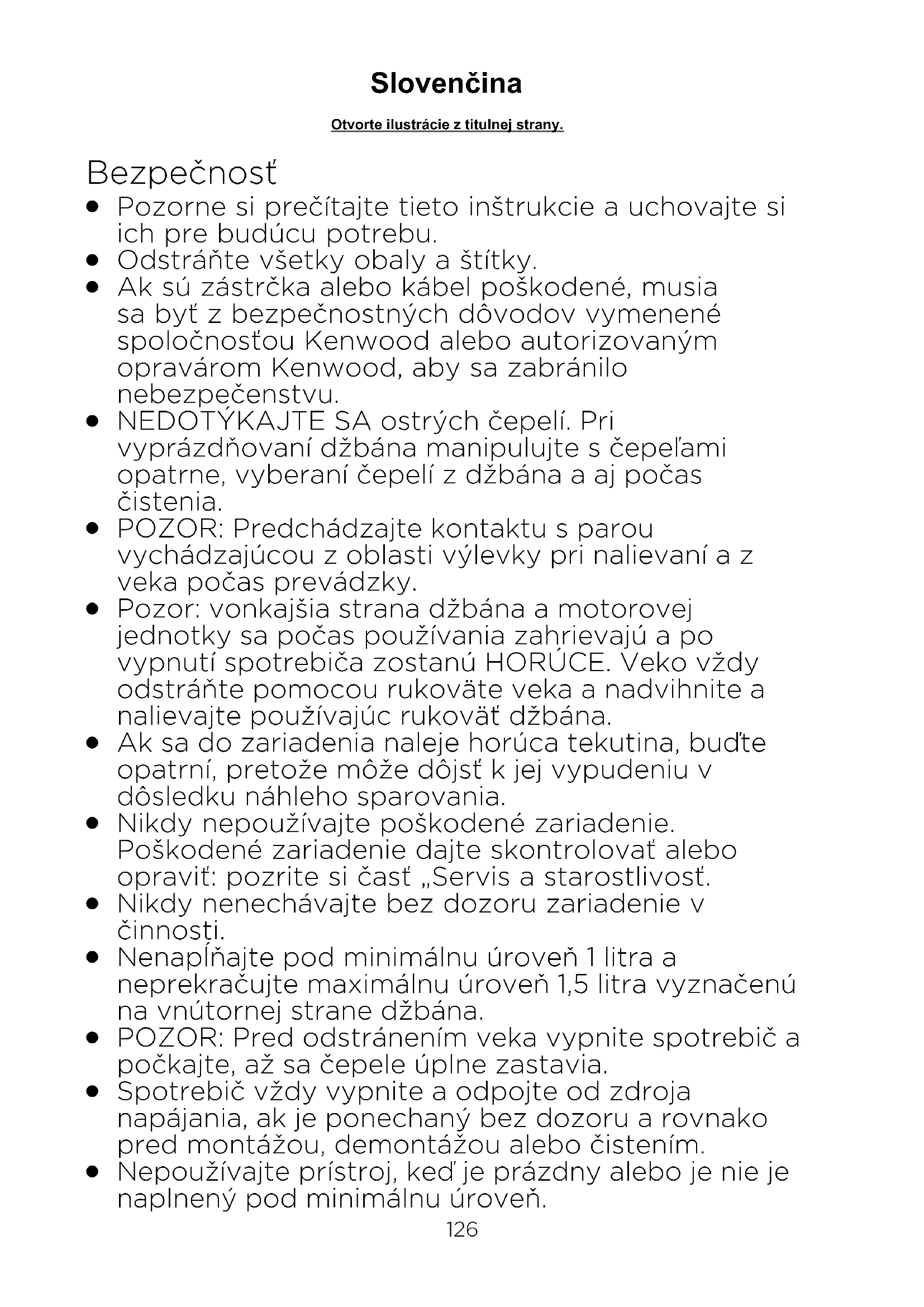 Ak sú zástrčka alebo kábel poškodené, musia sa byť z bezpečnostných dôvodov vymenené spoločnosťou Kenwood alebo autorizovaným opravárom Kenwood, aby sa zabránilo nebezpečenstvu.