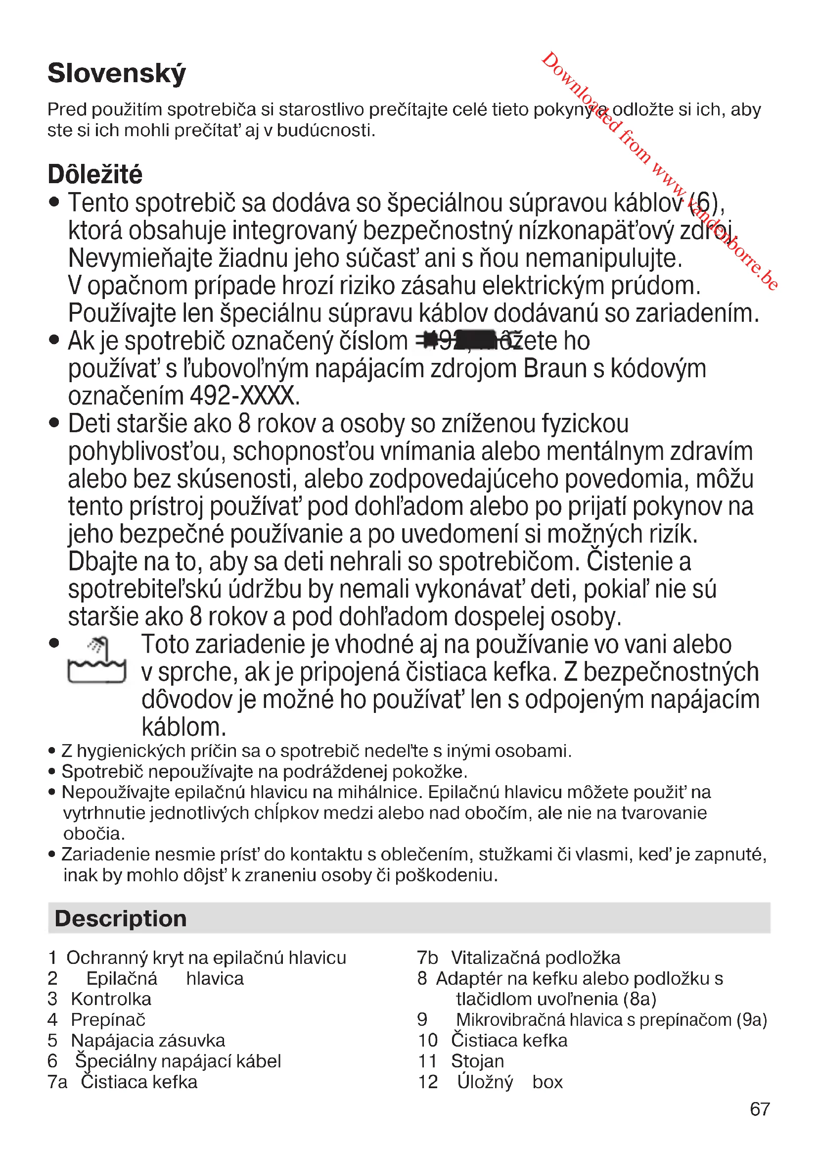 Ak je spotrebič označený číslom 492, môžete ho používať s ľubovoľným napájacím zdrojom Braun s kódovým označením 492-XXXX.