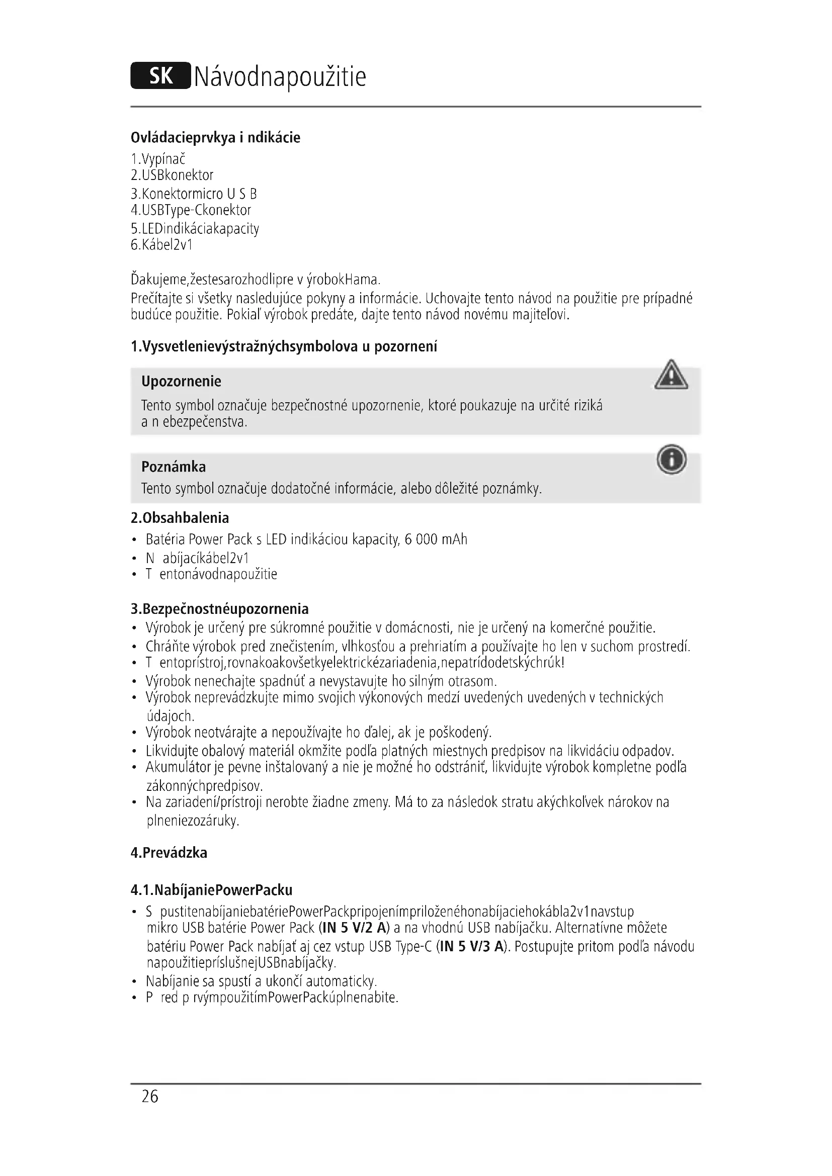- Predprvým použitím Power Pack úplne nabite. Q Návod na použitie27 Poznámka