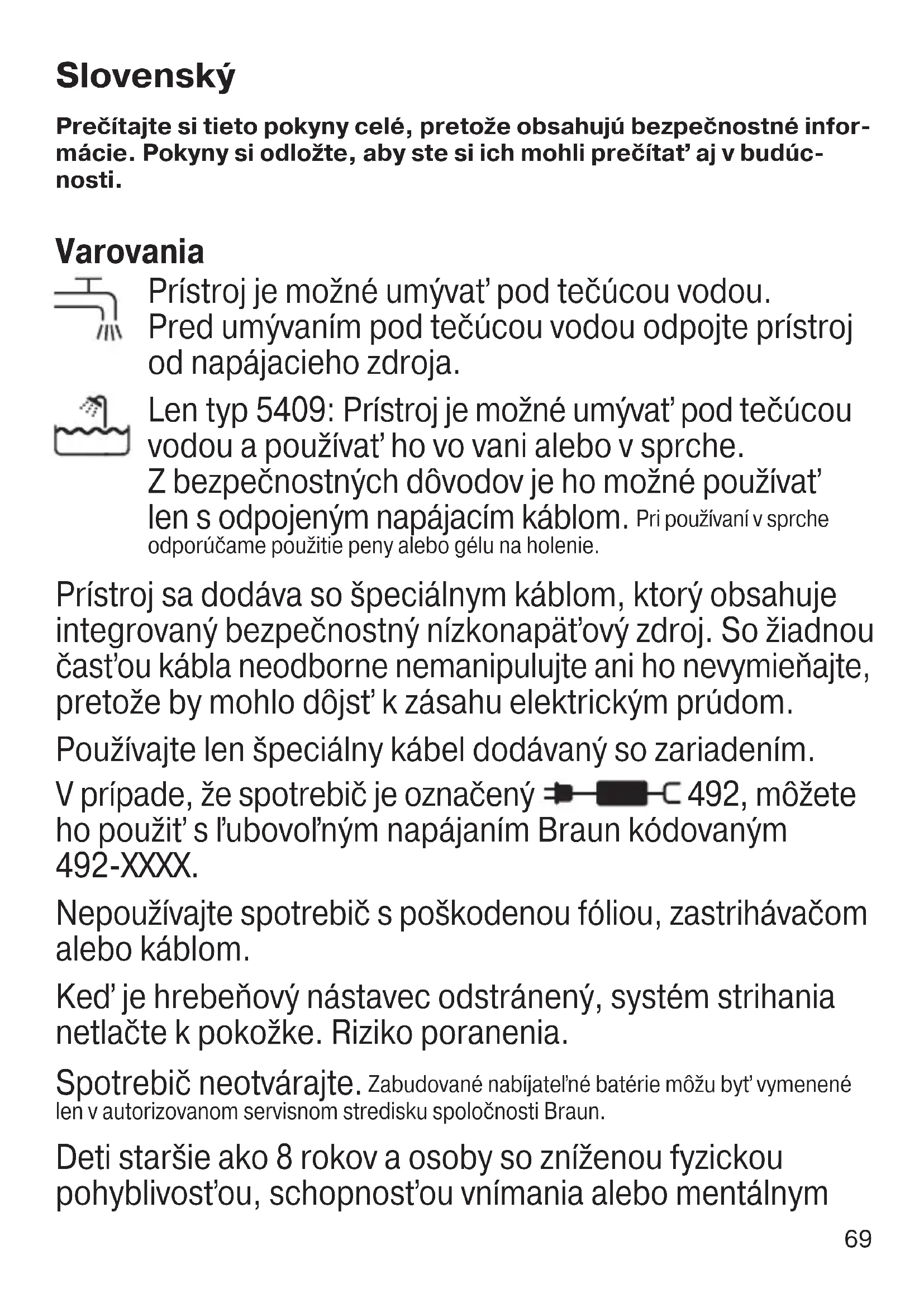 - nie je dostupne pri všetkych modeloch Elektrické špecifikácie nájdete na štítku špeciálneho napájacieho kábla. Nabíjanie Odporúčaná okolitá teplota pri nabíjaní je 5 °C až 35 °C. Pri nadmerne nízkych alebo vysokých teplotách sa batéria nemusí nabiť správne alebo vôbec. Odporúčaná okolitá teplota pri nabíjaní je 15 °C až 35 °C. Nevystavujte holiaci strojček dlhší čas teplotám nad 50 °C.