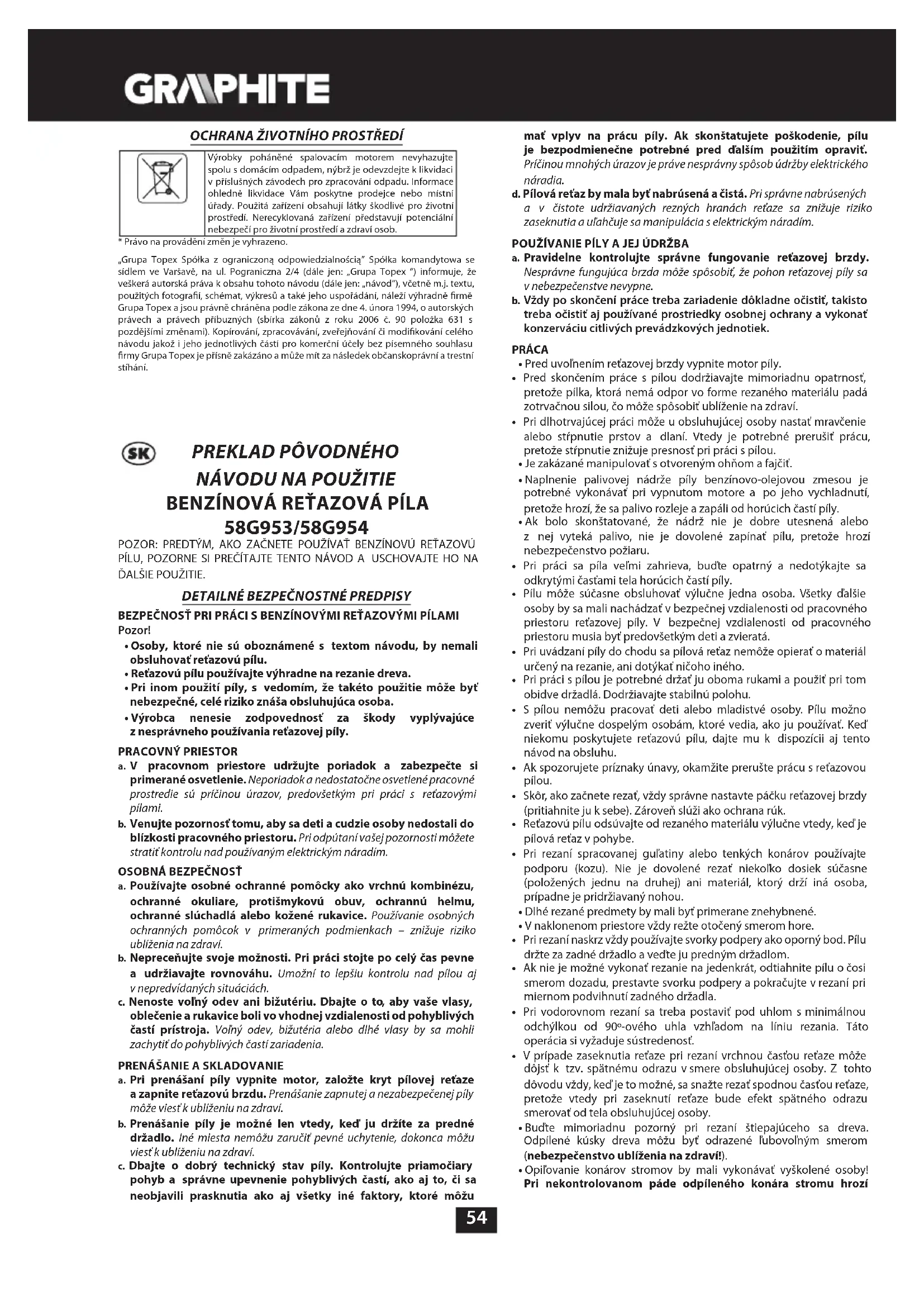 - Právo na zmenu je vyhradené.60 „Grupa Topex Spółka z ograniczoną odpowiedzialnością” Spółka komandytowa so sídlom vo Varšave, ul. Pograniczna 2/4 (ďalej iba: „Grupa Topex”) informuje, že všetky autorské práva k obsahu tohto návodu (ďalej iba: „Návod”), v rámci toho okrem iného k jeho textom, uvedeným fotograám, obrázkom a k jeho štruktúre, patria výhradne spoločnosti Grupa Topex a podliehajú právnej ochrane podľa zákona zo dňa 4. februára 1994, O autorských a obdobných právach (tj. Dz. U. 2006 Nr 90 Poz 631 v znení neskorších zmien). Kopírovanie, spracovávanie, publikovanie, úprava tohto Návodu ako celku alebo jeho jednotlivých častí na komerčné účely, bez písomného súhlasu spoločnosti Grupa Topex, je prísne zakázané a môže mať za následok občianskoprávne a trestnoprávne dôsledky.