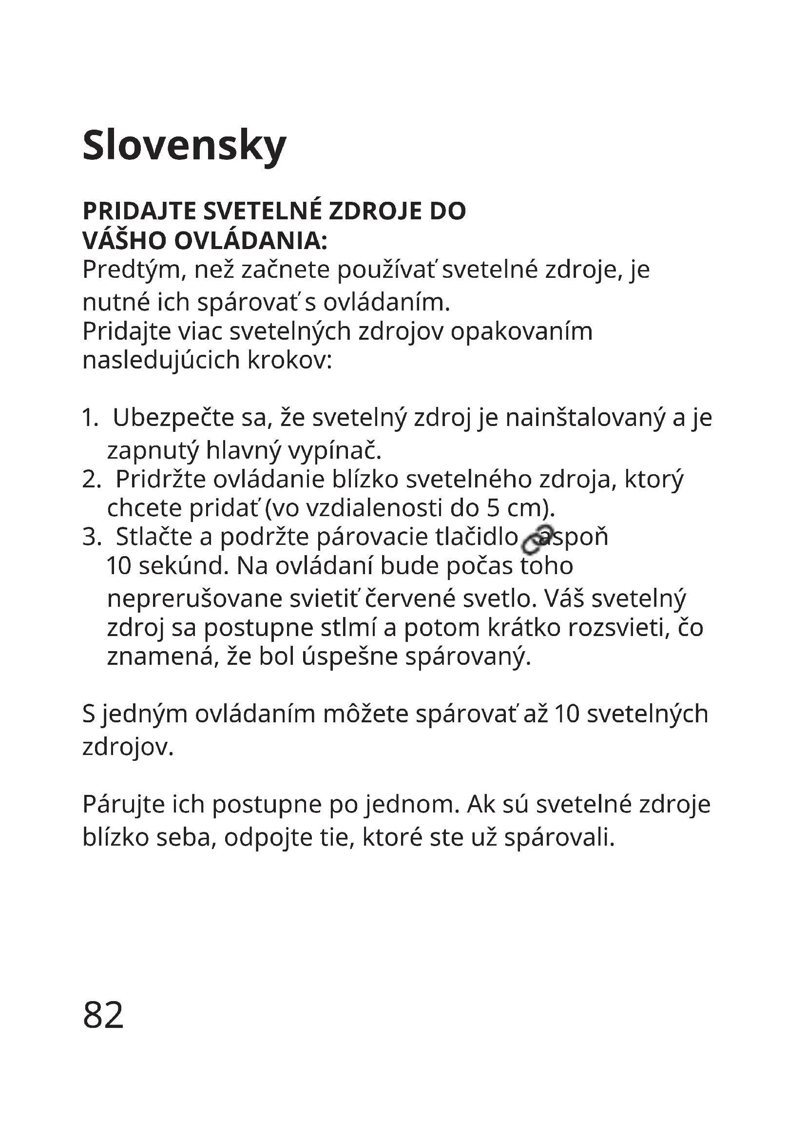 VÁŠHOOVLÁDANIA: Predtým, než začnete používať svetelné zdroje, je nutné ich spárovať s ovládaním. Pridajte viac svetelných zdrojov opakovaním nasledujúcich krokov:
