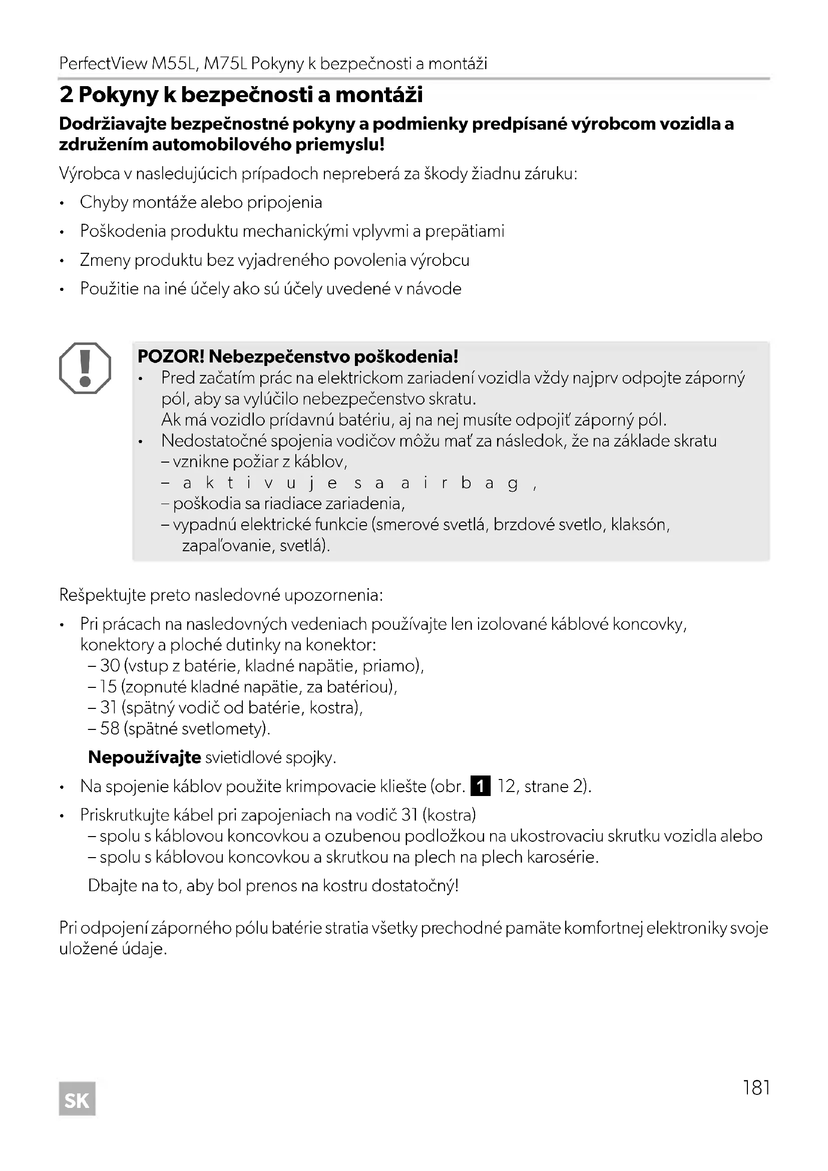 2 Pokyny k bezpečnosti a montáži Dodržiavajte bezpečnostné pokyny a podmienky predpísané výrobcom vozidla a združením automobilového priemyslu! Výrobca v nasledujúcich prípadoch nepreberá za škody žiadnu záruku: