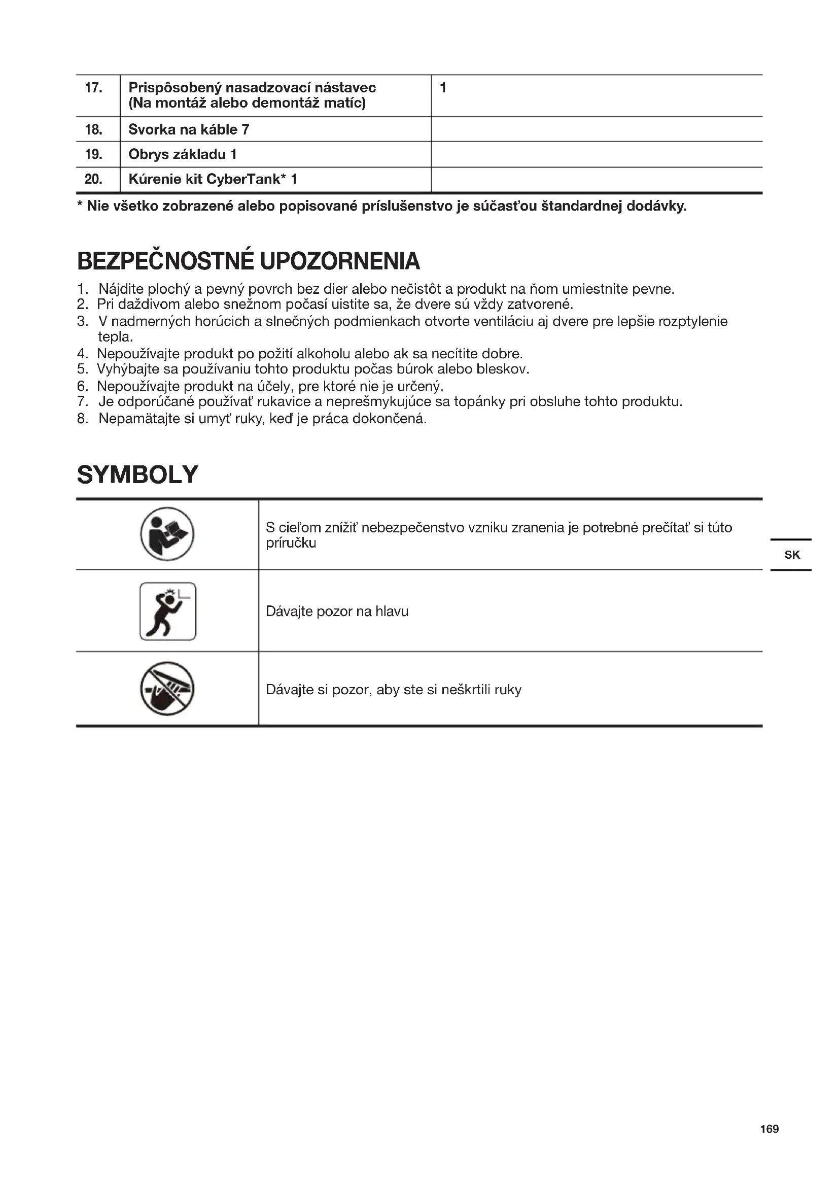 - Nie všetko zobrazené alebo popisované príslušenstvo je súþasĢou štandardnej dodávky. BEZPEýNOSTNÉ UPOZORNENIA