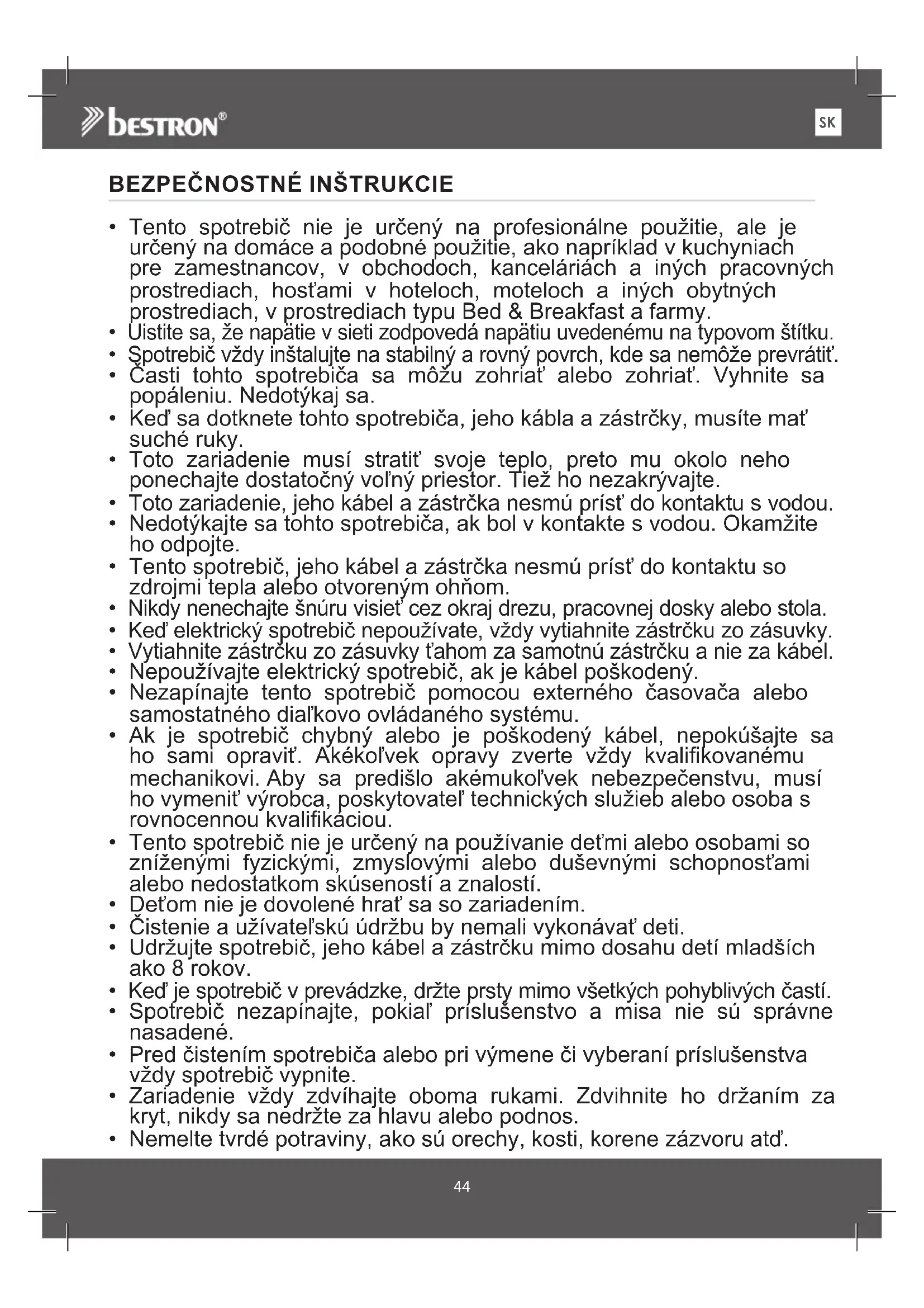 - Tento spotrebič nie je určený na používanie deťmi alebo osobami so zníženými fyzickými, zmyslovými alebo duševnými schopnosťami alebo nedostatkom skúseností a znalostí.