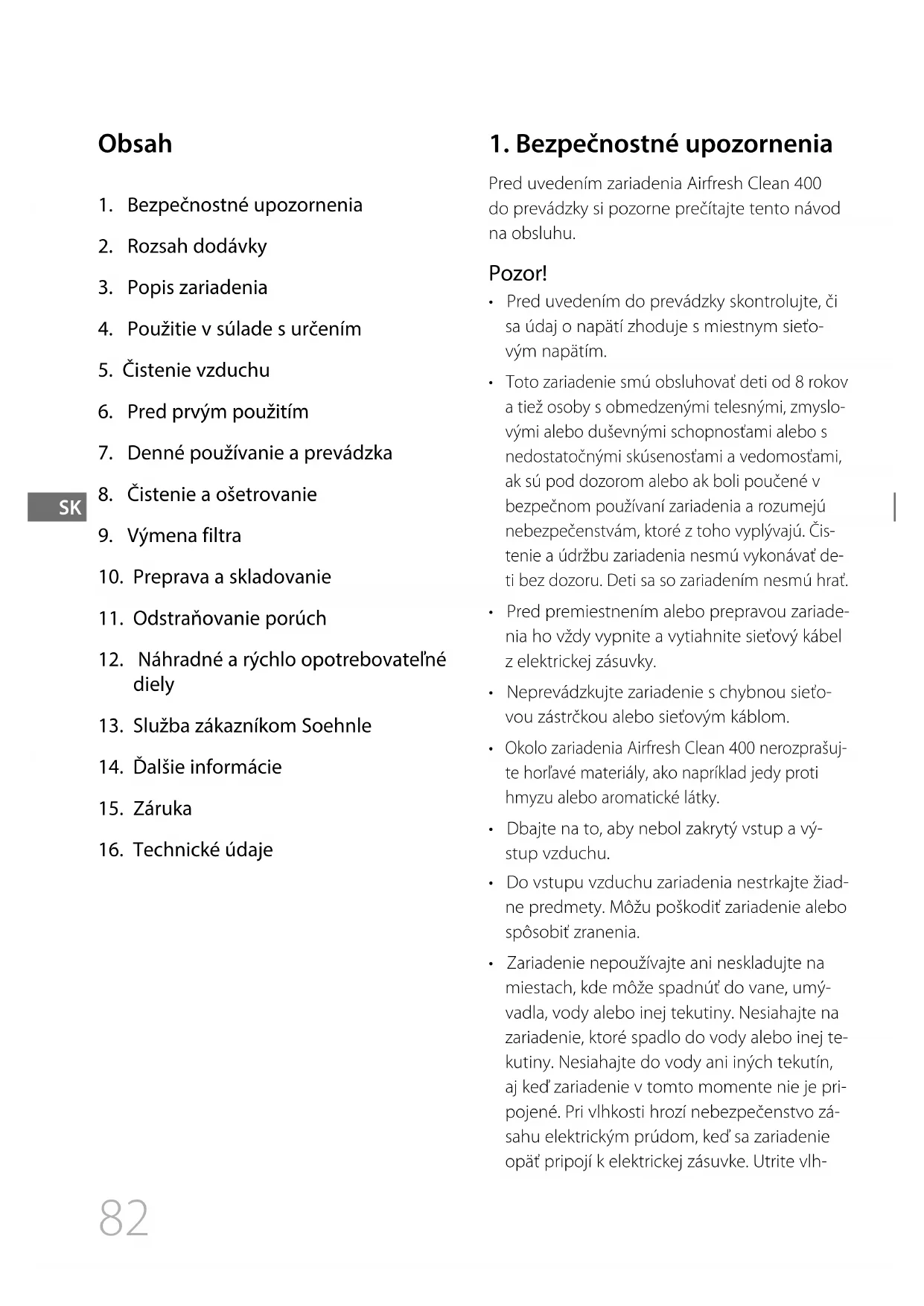 - Používajte iba originálny filter Soehnle, ktorý je vhodný pre toto zariadenie Airfresh Clean 400.