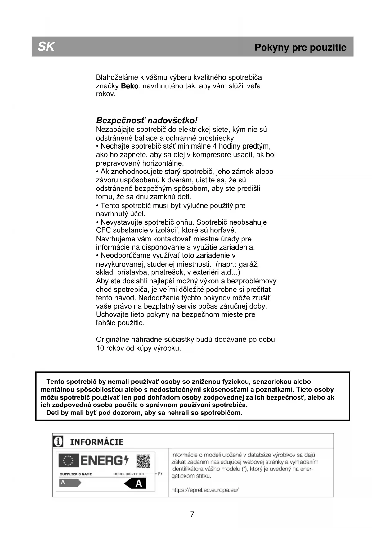 6Blahoželáme k vášmu výberu kvalitného spotrebiča značky Beko, navrhnutého tak, aby vám slúžil veľa rokov.