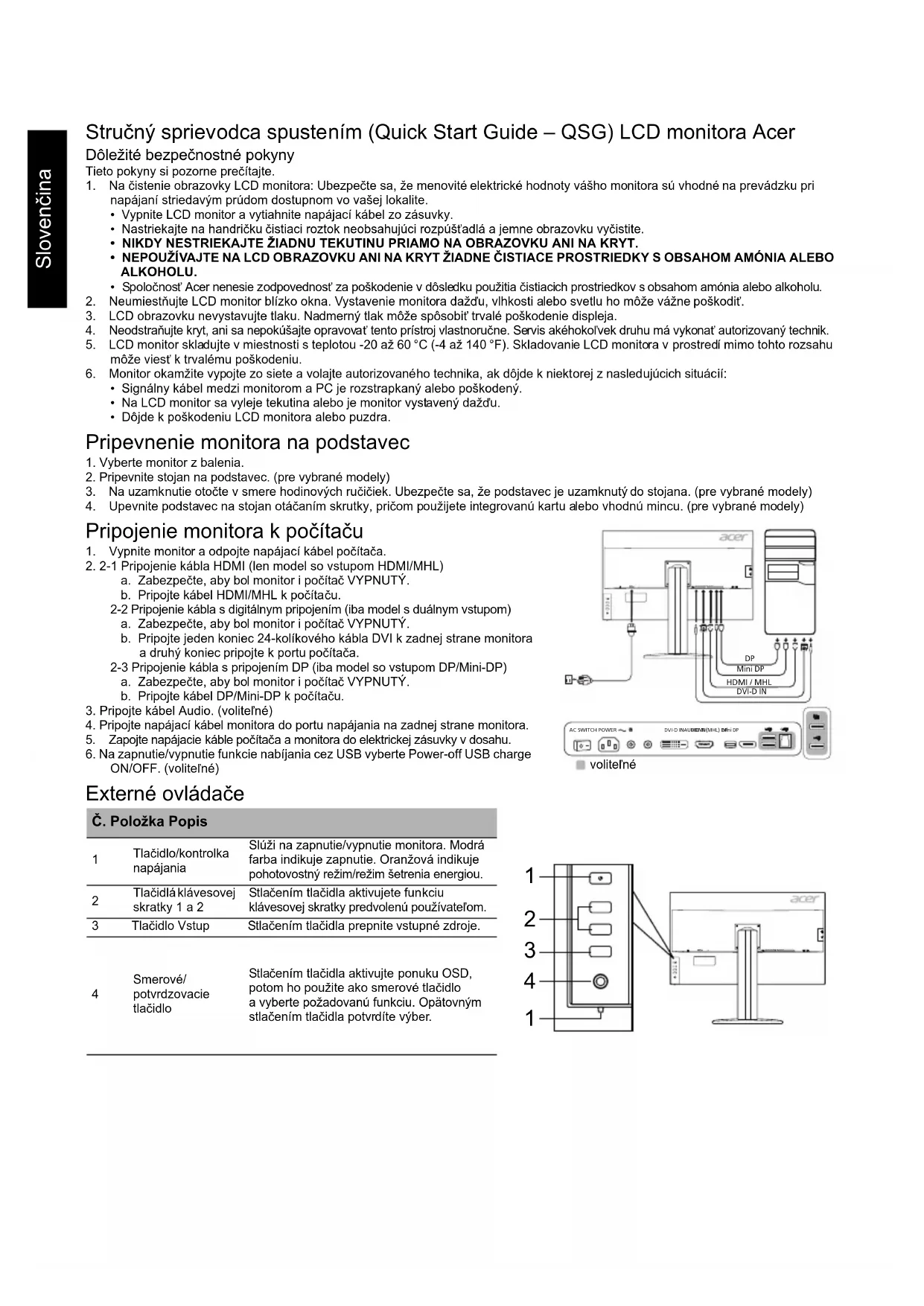 BM320 - Monitor ACER - Bezplatný návod na obsluhu
