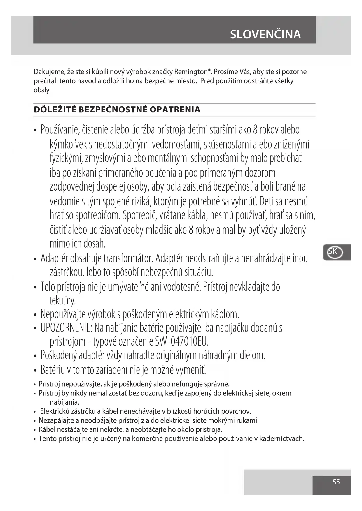 - Tento prístroj nie je určený na komerčné používanie alebo používanie v kaderníctvach. SLOVENČINA