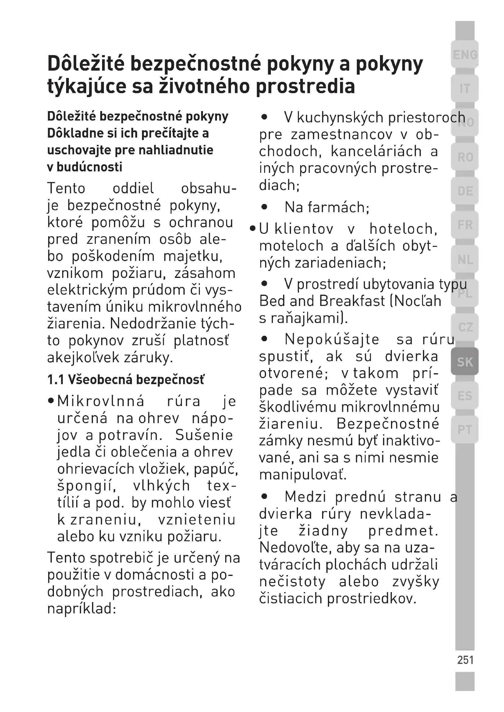 - VAROVANIE: Deťom dovoľte používať rúru bez dozoru, len ak ste ich zod- povedajúcim spôsobom poučili, takže je dieťa schopné používať mik- rovlnnú rúru bezpečne a rozumie nebezpečenstvám plynúcim z nesprávneho použitia.259 ENG