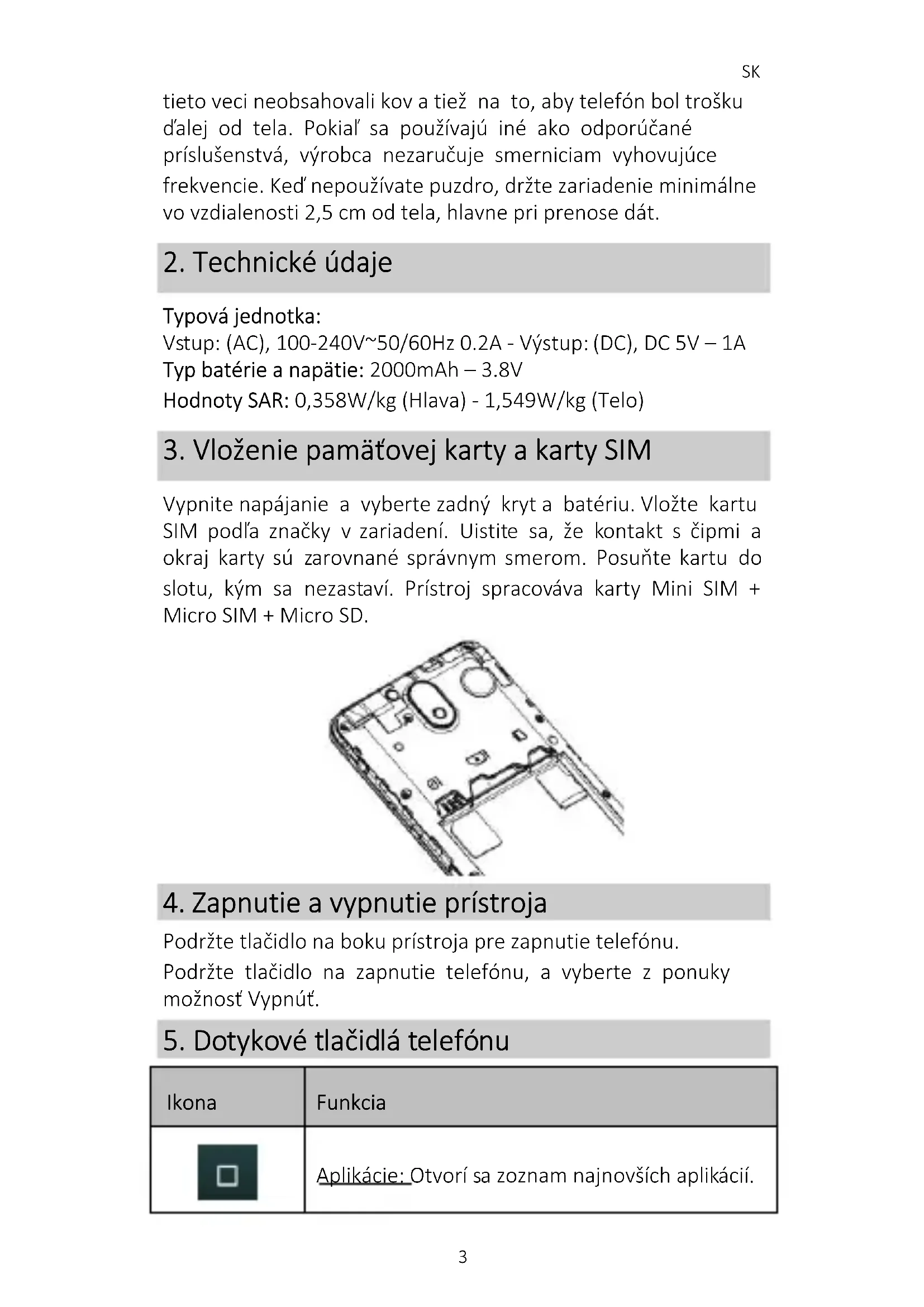 3. Vloženie pamäťovej karty a karty SIM