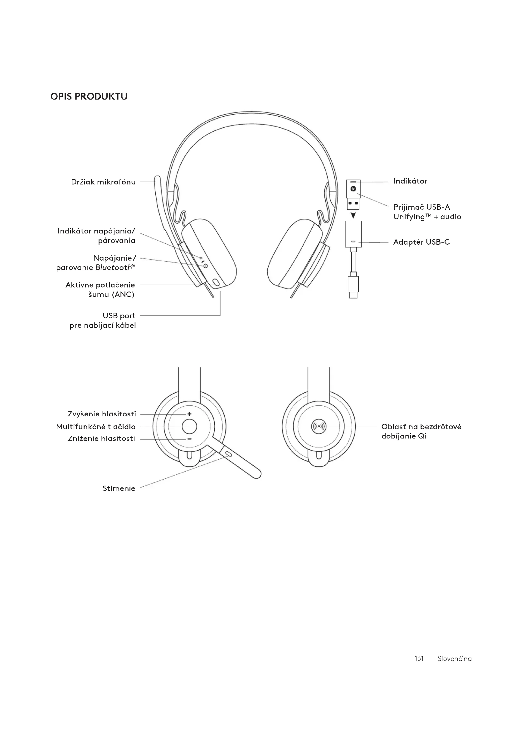 scieľom lepšieho snímania hlasu. OFF/ON www.logitech.com/ support/unifying Advanced NextUSB-AUSB-C 133 Slovenčina„ANC zapnuté“ „ANC vypnuté“ AKTÍVNE POTLAČENIE ŠUMU (ANC) Funkcia ANC blokuje šum okolo vás, čím vám pomáha skoncentráciou na danú úlohu.