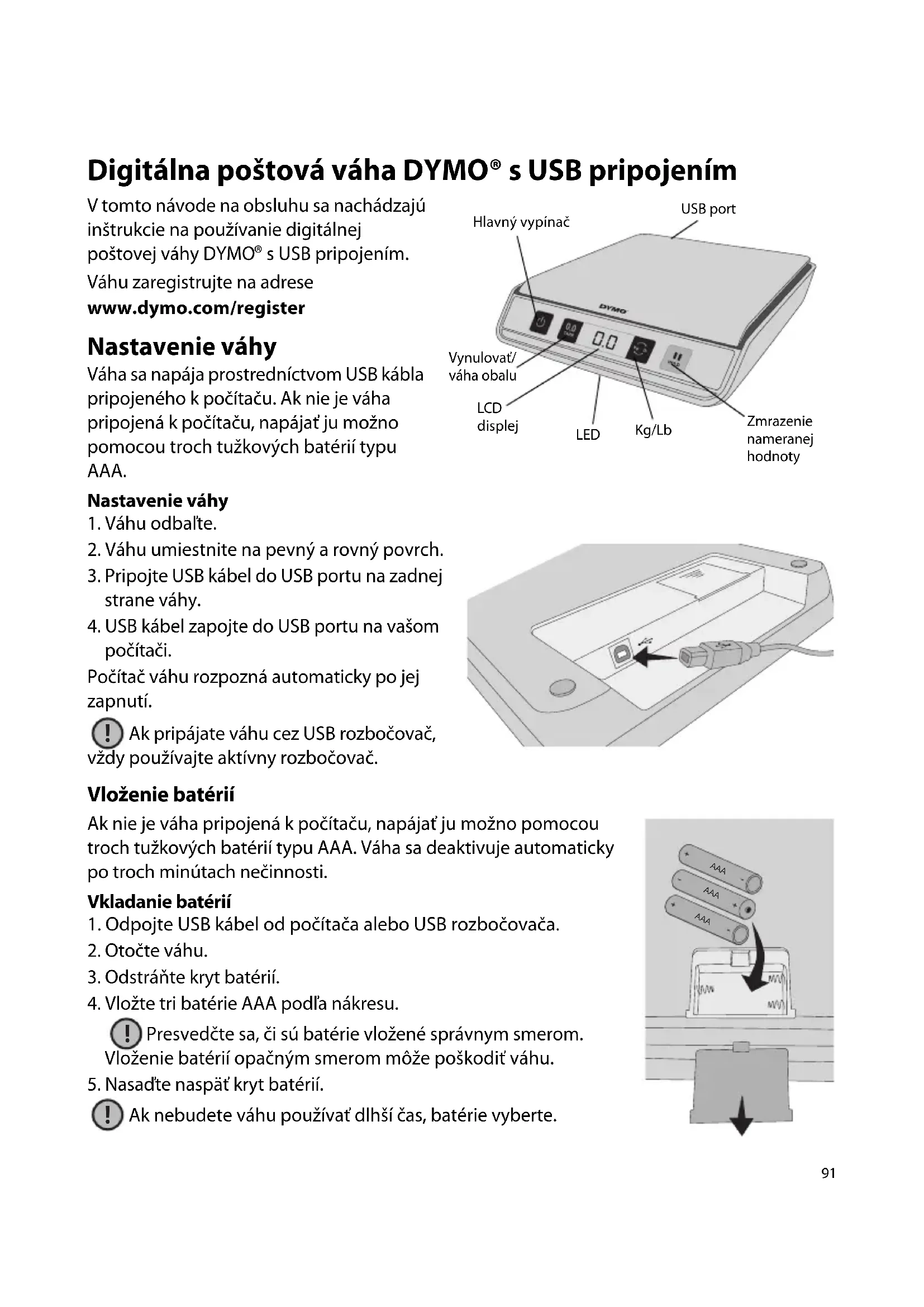 Pri uplatňovaní záruky kontaktujte oddelenie podpory zákazníkom: www.dymoservice.com 2 + 1 rok záruka - registrácia Zaregistrujte sa na www.dymo.com/register a predĺžte si záruku o jeden rok. Registrácia online je jednoduchá. Obdržíte certifikát o trojročnej záruke a získate nasledujúce výhody: