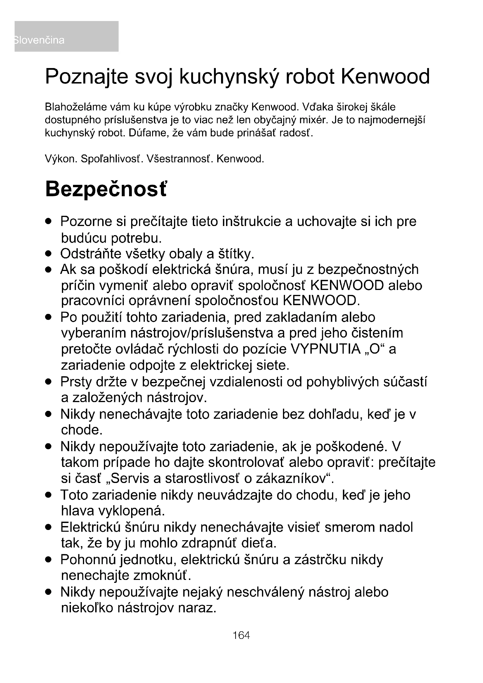 Toto zariadenie používajte len v domácnosti na stanovený účel. Firma Kenwood nepreberie žiadnu zodpovednosť za následky nesprávneho používania zariadenia, ani za následky nerešpektovania týchto inštrukcií. Slovenčina166 Pred zapojením do elektrickej siete