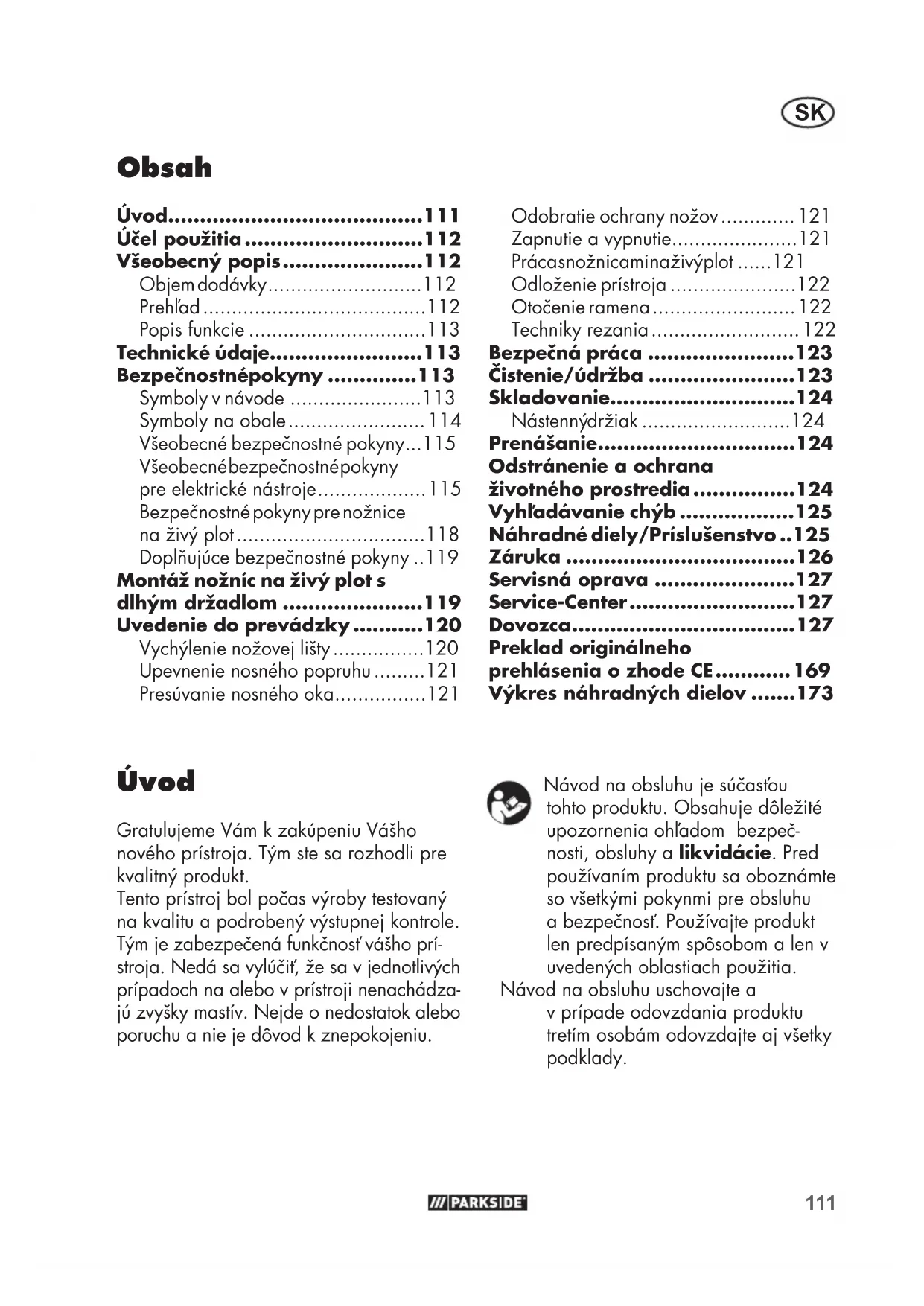 - Bezpečnostné pokyny pre nožnice na živý plot p. 118
