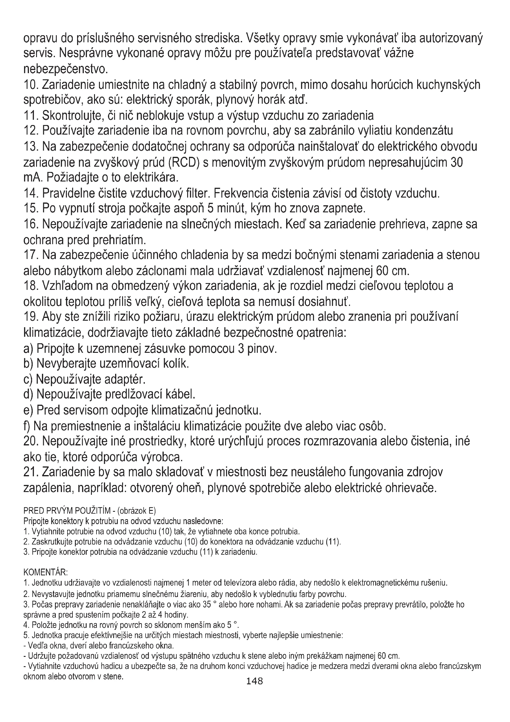 148- Výstup alebo prívod vzduchu nemožno blokovať ochrannou mriežkou alebo prekážkou.