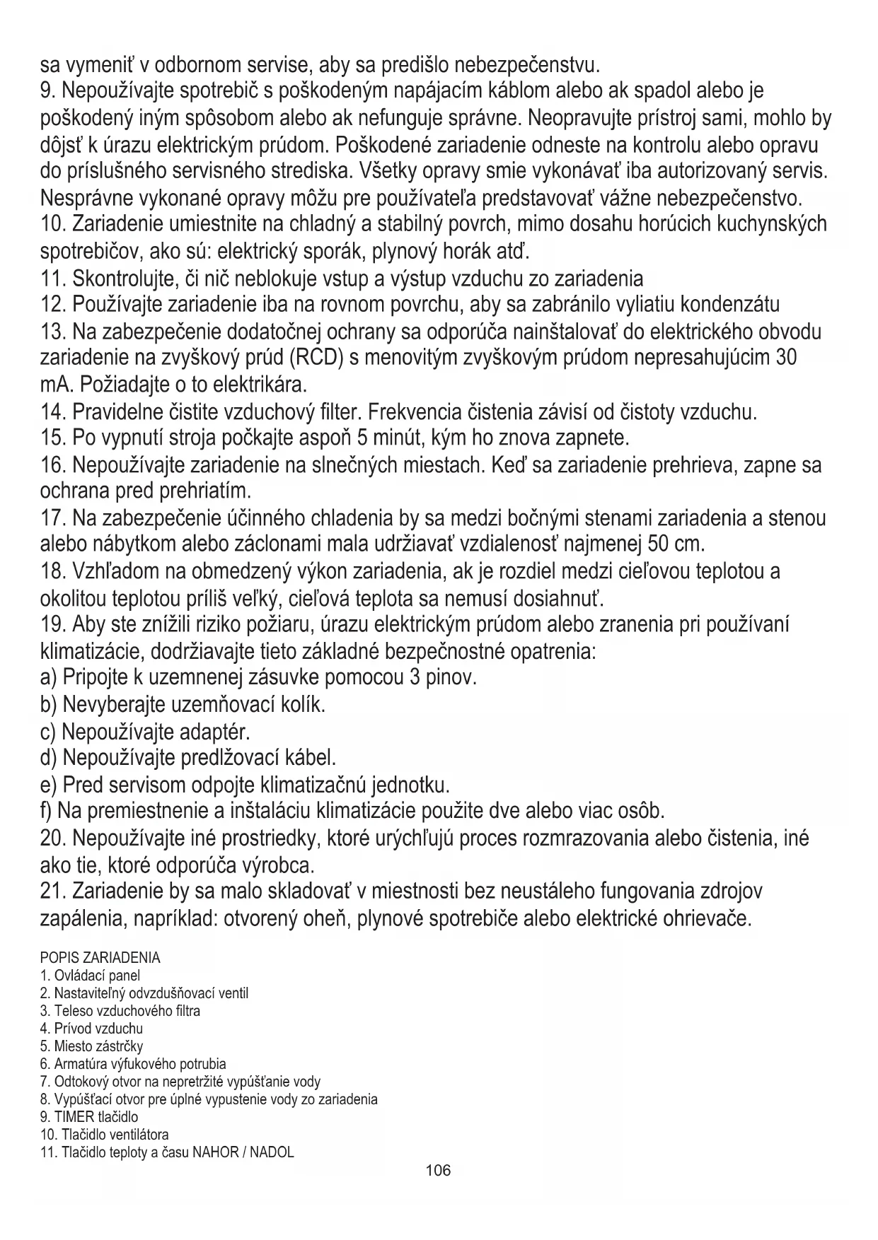 12. Používajte zariadenie iba na rovnom povrchu, aby sa zabránilo vyliatiu kondenzátu