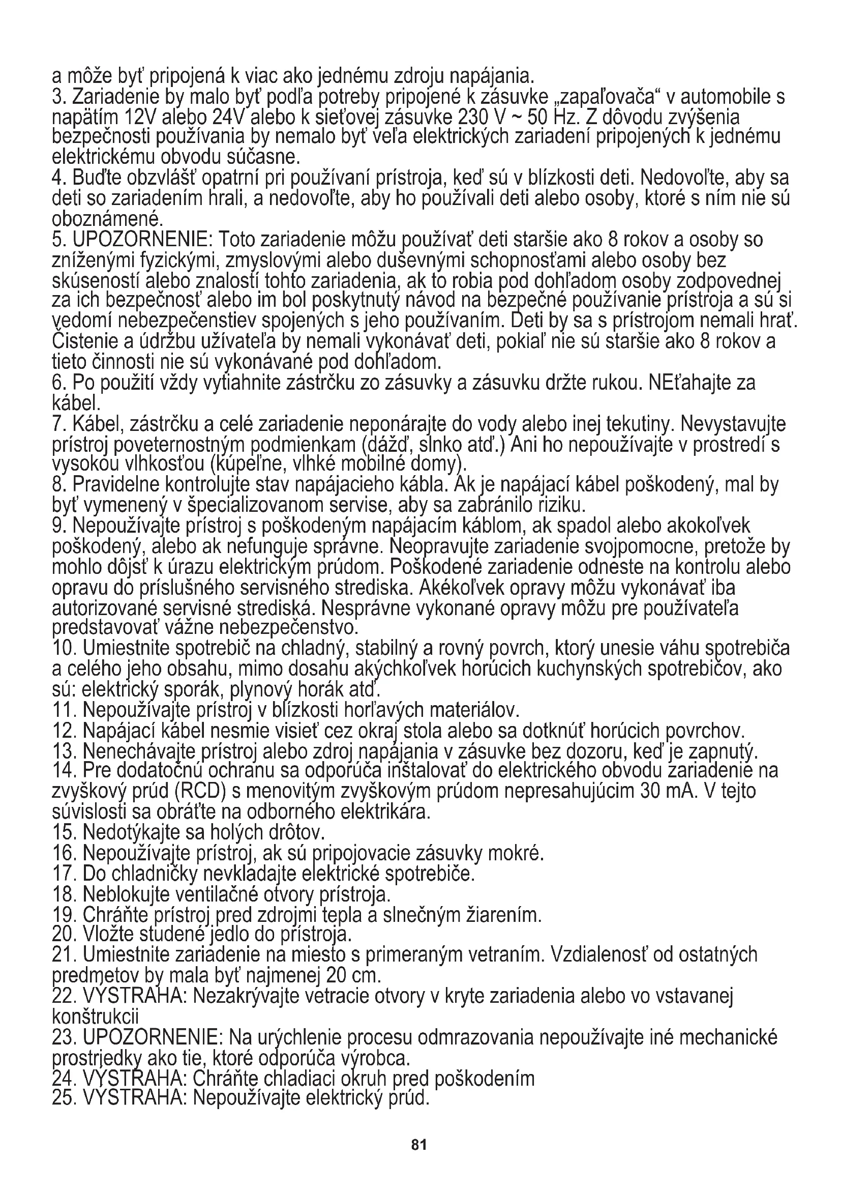 iné účely, ktoré nie sú v súlade s jeho určením. Jednotka je vhodná na použitie v kempingu81 a môže byť pripojená k viac ako jednému zdroju napájania.