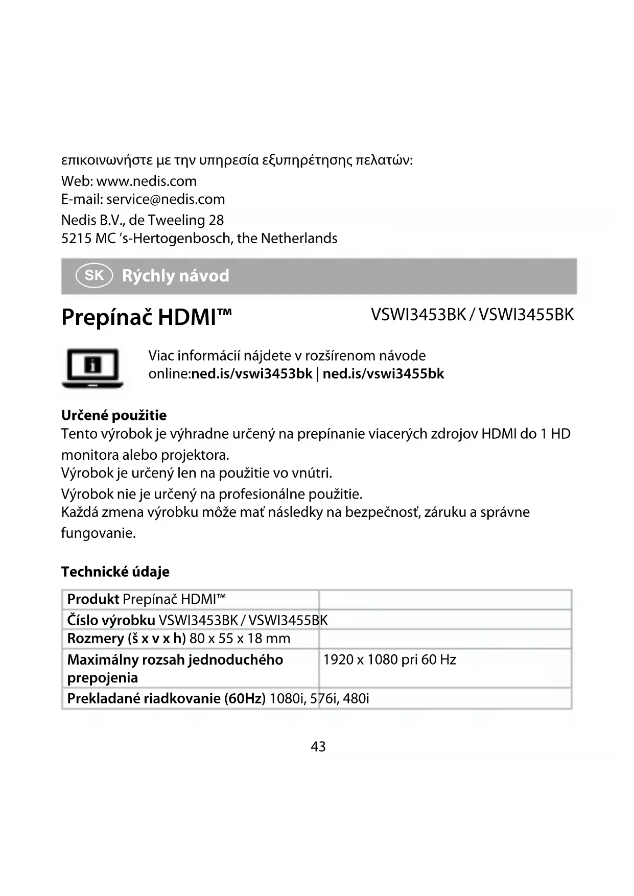 môžete prepínať medzi vstupmi. Vyhlásenie ozhode Spoločnosť Nedis B.V. ako výrobca vyhlasuje, že výrobok VSWI3453BK / VSWI3455BK našej značky Nedis