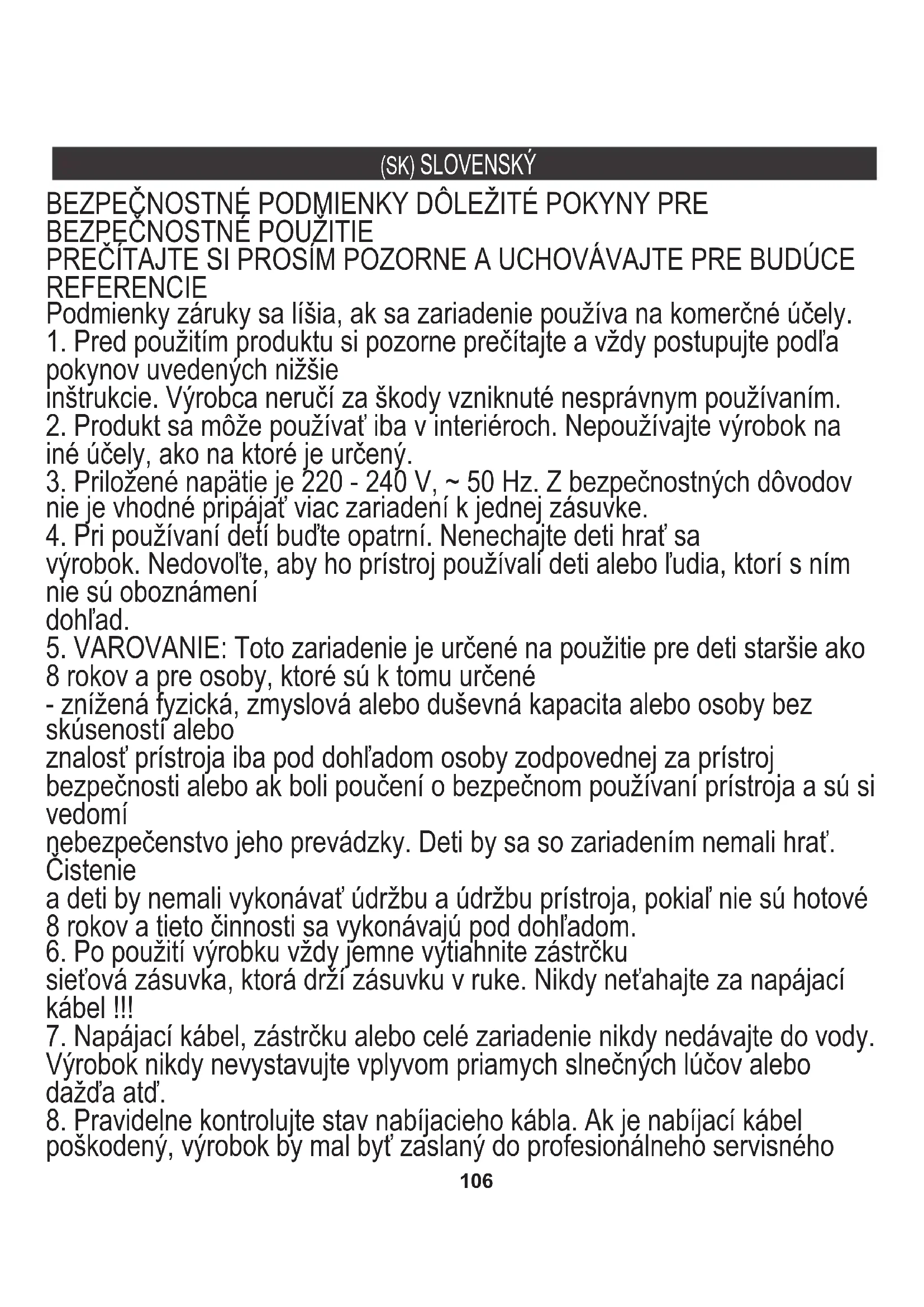 20. POZOR deti od 3 do 8 rokov môžu prístroj používať bezpečne iba pod