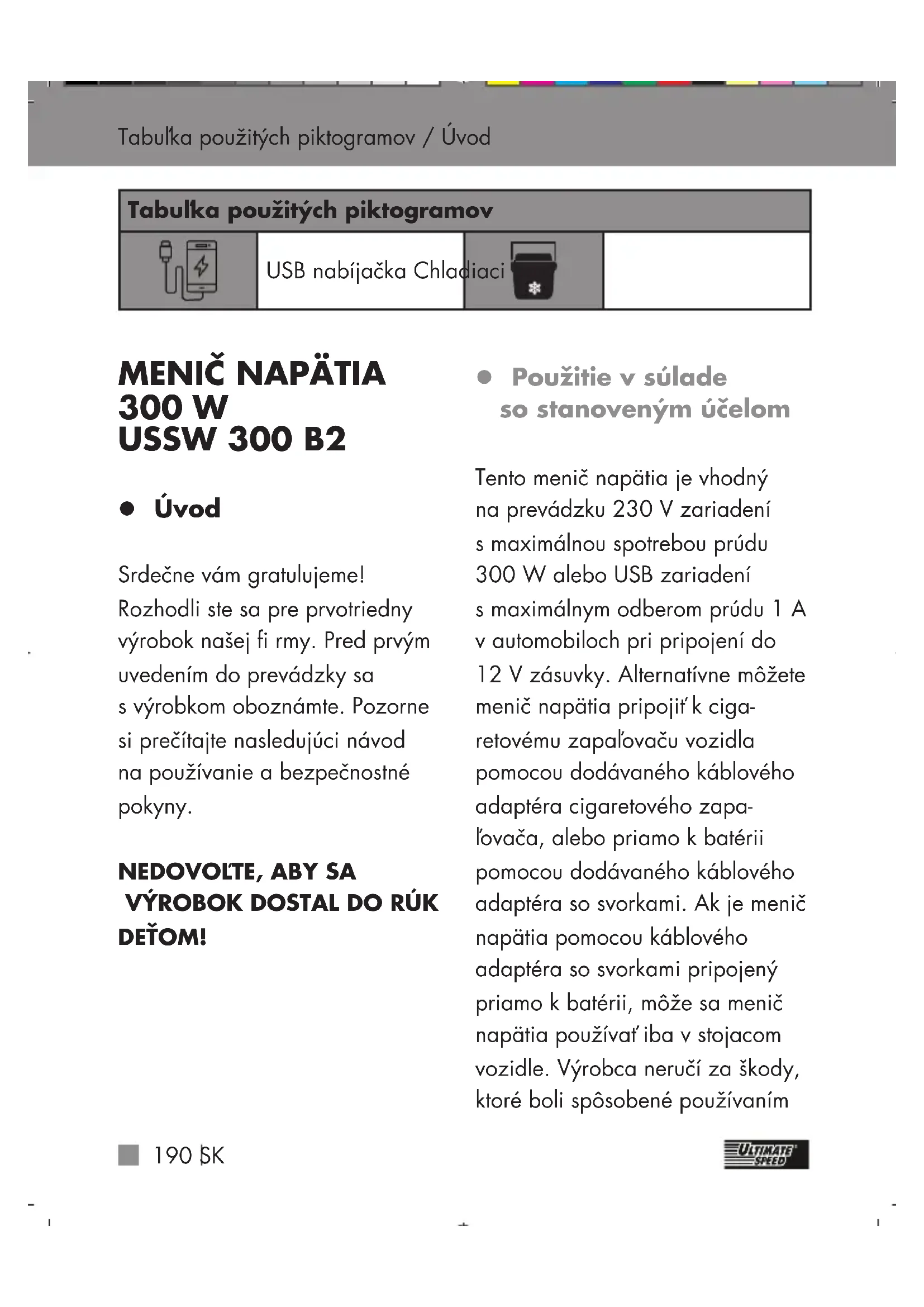 USSW 300 B2 - Nekategorizované ULTIMATE SPEED - Bezplatný návod na obsluhu
