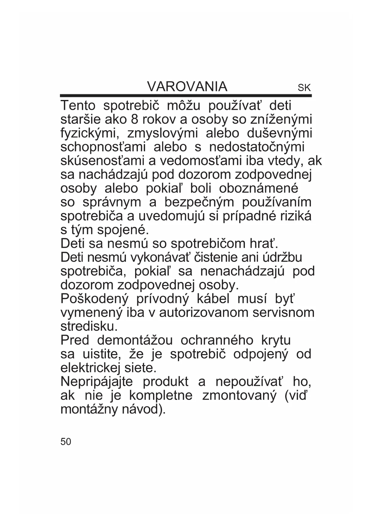 Dátum/podpis: ................................................................................................................................................................................... Záruka se nevztahuje. Zodpovědný zástupce za servis pro ČR na značky: ARDES, Guzzanti, Scarlett, Luxell, Graef ČERTES spol. s r.o. Donínská 83 463 34 Hrádek nad Nisou Tel./fax 482771487 - příjem oprav- servis. Tel./fax 482718718 - náhradní díly Mobil: 721018073, 731521116, 608719174 Pracovní doba 8 - 16,30 www: certes.info, e-mail: certes@certes.info Distributor PRIVEST s.r.o. Na Zlatnici 301/2 Praha 4, PSČ 147 00 www: www.privest.cz Email: info@privest.cz Telefon: (+420) 241 410 81950 Tento spotrebič môžu používať deti staršie ako 8 rokov a osoby so zníženými fyzickými, zmyslovými alebo duševnými schopnosťami alebo s nedostatočnými skúsenosťami a vedomosťami iba vtedy, ak sa nachádzajú pod dozorom zodpovednej osoby alebo pokiaľ boli oboznámené so správnym a bezpečným používaním spotrebiča a uvedomujú si prípadné riziká s tým spojené. Deti sa nesmú so spotrebičom hrať. Deti nesmú vykonávať čistenie ani údržbu spotrebiča, pokiaľ sa nenachádzajú pod dozorom zodpovednej osoby. Poškodený prívodný kábel musí byť vymenený iba v autorizovanom servisnom stredisku. Pred demontážou ochranného krytu sa uistite, že je spotrebič odpojený od elektrickej siete. Nepripájajte produkt a nepoužívať ho, ak nie je kompletne zmontovaný (viď montážny návod). VAROVANIA SK51 Upozornenie: Dôkladne si prečítajte tento návod na obsluhu, ktorý obsahuje dôležité pokyny týkajúce sa bezpečnej inštalácie, použitia a údržby spotrebiča. Uschovajte tento návod pre prípadné použitie v budúcnosti. Nedovoľte deťom hrať sa so spotrebičom. Tento spotrebič sa môže využívať len na účel, na ktorý bol navrhnutý; akékoľvek iné použitie je nesprávne a nebezpečné. Výrobca nenesie žiadnou zodpovednosť za poškodenia spôsobené nevhodným a/alebo nesprávnym použitím. Toto zariadenie NIE JE vhodné na použitie v explozívnom prostredí (v prítomnosti horľavých látok ako je benzín, výpary, hmla alebo prach, v atmosférických podmienkach, kde sa po vznietení spaliny šíria ľahko vzduchom). Obalové materiály (plastové vrecká, polystyrén a pod.) držte mimo dosahu detí alebo nespôsobilých osôb, pretože predstavujú riziko. Inštalácia/zostavenie spotrebiča musí byť v súlade s pokynmi výrobcu. Nesprávny postup môže viesť k zraneniu osôb, zvierat alebo k poškodeniu majetku, za čo výrobca nenesie zodpovednosť. Spotrebič postavte a používajte na horizontálnom a stabilnom povrchu. Pred použitím skontrolujte stav spotrebiča a prívodného kábla. V prípade pochybností kontaktujte kvalikovaného technika. Pred pripojením spotrebiča k sieťovej zásuvke skontrolujte, či zodpovedajú hodnoty napájania (napätie a frekvencia) spotrebiča s parametrami elektrickej siete. Uistite sa, že je elektrická sieť vybavená správnym uzemnením v súlade s platnými predpisy. NEPRIPÁJAJTE spotrebič k mnohonásobnej zásuvke. Ak je to možné, vyhnite sa použitiu adaptérov alebo predlžovacích káblov; ak je ich použitie nutné, používajte len tie, ktoré vyhovujú platným bezpečnostným predpisom. Spotrebič nezapínajte pomocou externých časovačov alebo iných diaľkovo riadených systémov, ktoré nie sú uvedené v tomto návode. Spotrebič NEPOUŽÍVAJTE ani neskladujte v blízkosti zdrojov tepla (ohrievače, kachle a pod.). Spotrebič NEPONÁRAJTE do vody ani iných tekutín; v prípade pádu do vody HO NEVYŤAHUJTE, najskôr odpojte zástrčku od sieťovej zásuvky. Pred prvým použitím spotrebiča odstráňte všetky obalové materiály a štítky, ktoré by mohli brániť v správnej funkčnosti. Kábel pripájajte a odpájajte len suchými rukami. Pred pripojením sa uistite, že je tlačidlo zapnutia na spotrebiči v pozícii „OFF“ (vypnuté).52 Po použití odpojte zástrčku, aby ste zabránili prehriatiu (na prenášanie spotrebiča nepoužívajte kábel). Prívodný kábel neveďte cez ostré ani drsné plochy a v miestach, kde sa môže ľahko poškodiť. NEBLOKUJTE ani čiastočne vstup a výstup vzduchu a do spotrebiča nevkladajte cudzie predmety. Počas prevádzky sa nedotýkajte spotrebiča mokrými časťami tela a v každom prípade odporúčame použitie izolačného materiálu medzi vami a podlahou (napríklad obuv s gumovou podrážkou). Počas použitia udržiavajte spotrebič v bezpečnej vzdialenosti od predmetov a prípadne horľavých látok. V prípade poruchy alebo neštandardnej prevádzky spotrebiča ho ihneď vypnite, odpojte od elektrickej siete a skontrolujte príčinu poruchy, ak je to možné, s pomocou kvalikovanej osoby. Nevykonávajte žiadne činnosti, ktoré nie sú popísané v tomto návode (napríklad demontáž spotrebiča). Pred čistením, uskladnením, vykonávaním údržby alebo ak nebudete spotrebič používať dlhší čas, odpojte ho od elektrickej siete. Spotrebič používajte a skladujte len vo vnútri alebo ho chráňte pred slnkom, dažďom a prachom. Spotrebič nie je určený na použitie a skladovanie vonku. Čistenie a údržbu spotrebiča NESMÚ vykonávať deti bez dozoru dospelej osoby. Pred odpojením spotrebiča ho vypnite pomocou príslušného príkazu alebo tlačidla na ovládacom paneli. NEVEŠAJTE ventilátor na stenu a strop, ak nie je tento typ inštalácie povolený výrobcom. Spotrebič postavte do správnej vzdialenosti od predmetov alebo okolitých stien tak, aby jeho funkcia nespôsobila poškodenie. Spotrebič NEPOUŽÍVAJTE v blízkosti plynových sporákov alebo zdroja otvoreného ohňa. Spotrebič NEPOUŽÍVAJTE v blízkosti záclon a textílií. Spotrebič počas prevádzky NEZAKRÝVAJTE. Cez mriežku spotrebiča NEVKLADAJTE žiadne cudzie predmety. Spotrebič počas prevádzk