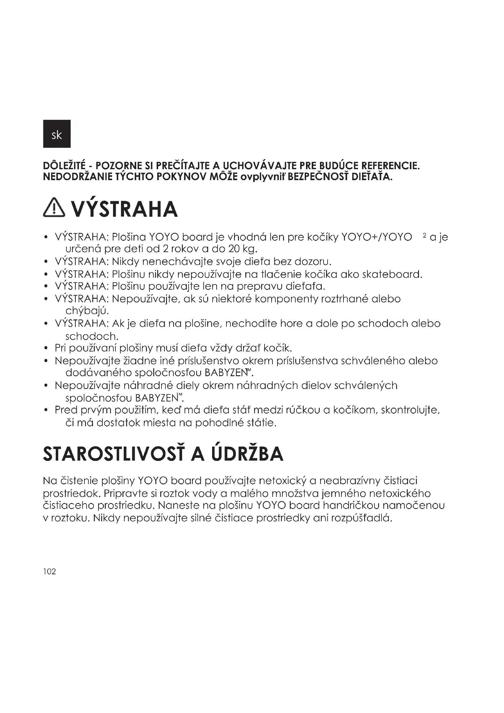 - VÝSTRAHA: Plošinu používajte len na prepravu dieťaťa.
