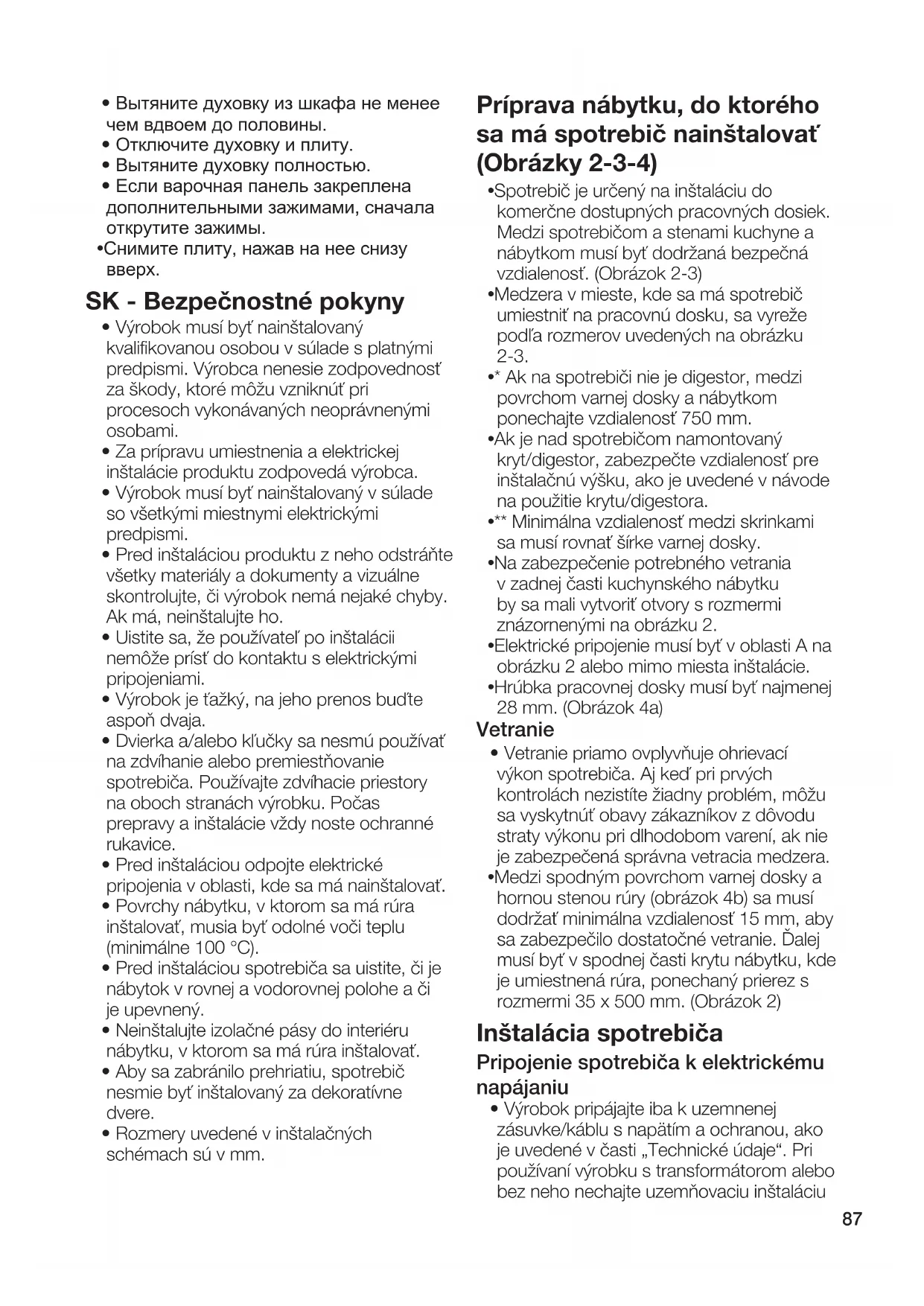 - Spotrebič je určený na inštaláciu do komerčne dostupných pracovných dosiek. Medzi spotrebičom a stenami kuchyne a nábytkom musí byť dodržaná bezpečná vzdialenosť. (Obrázok 2-3)