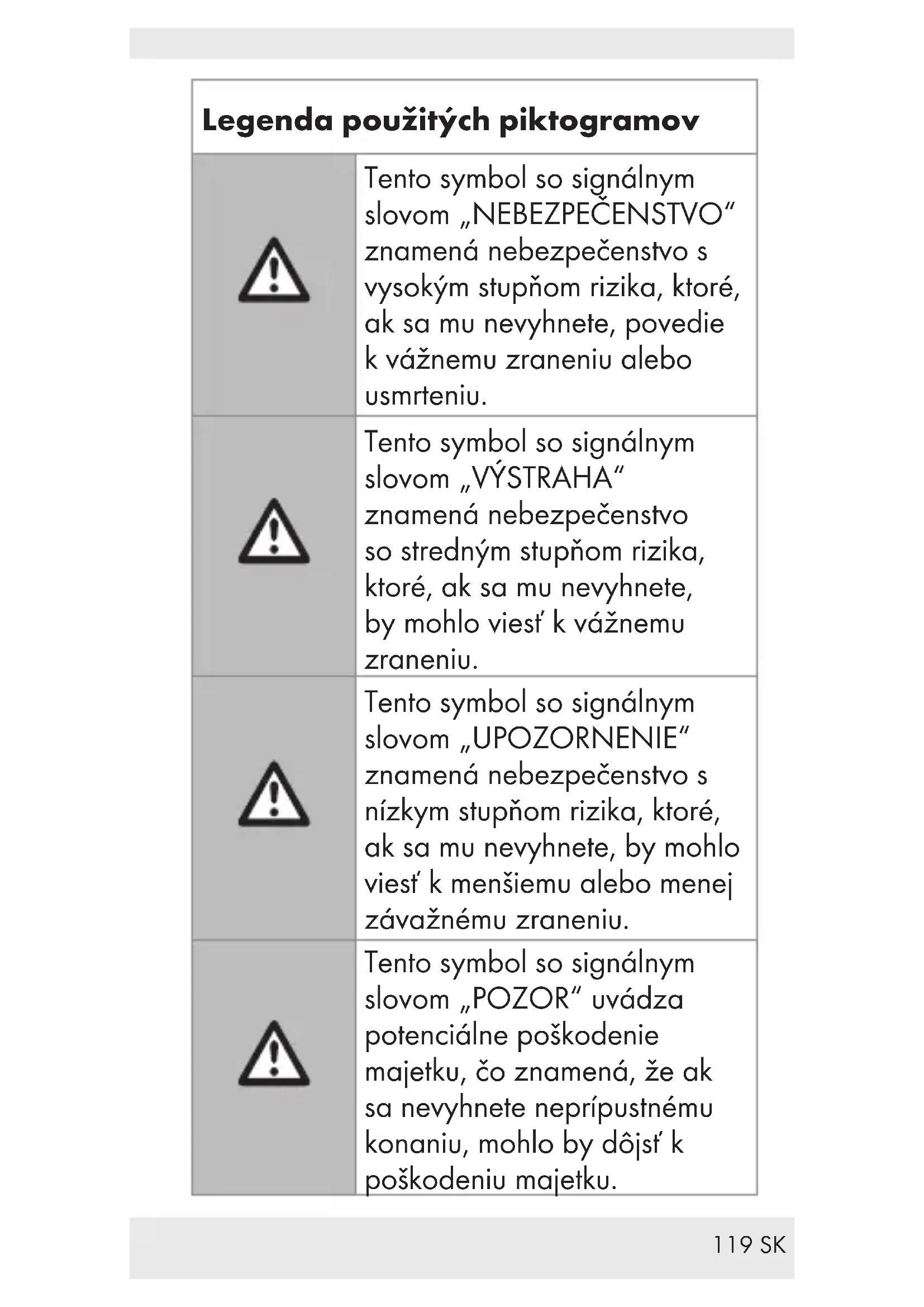 POZOR! RIZIKO POŠKODENIA