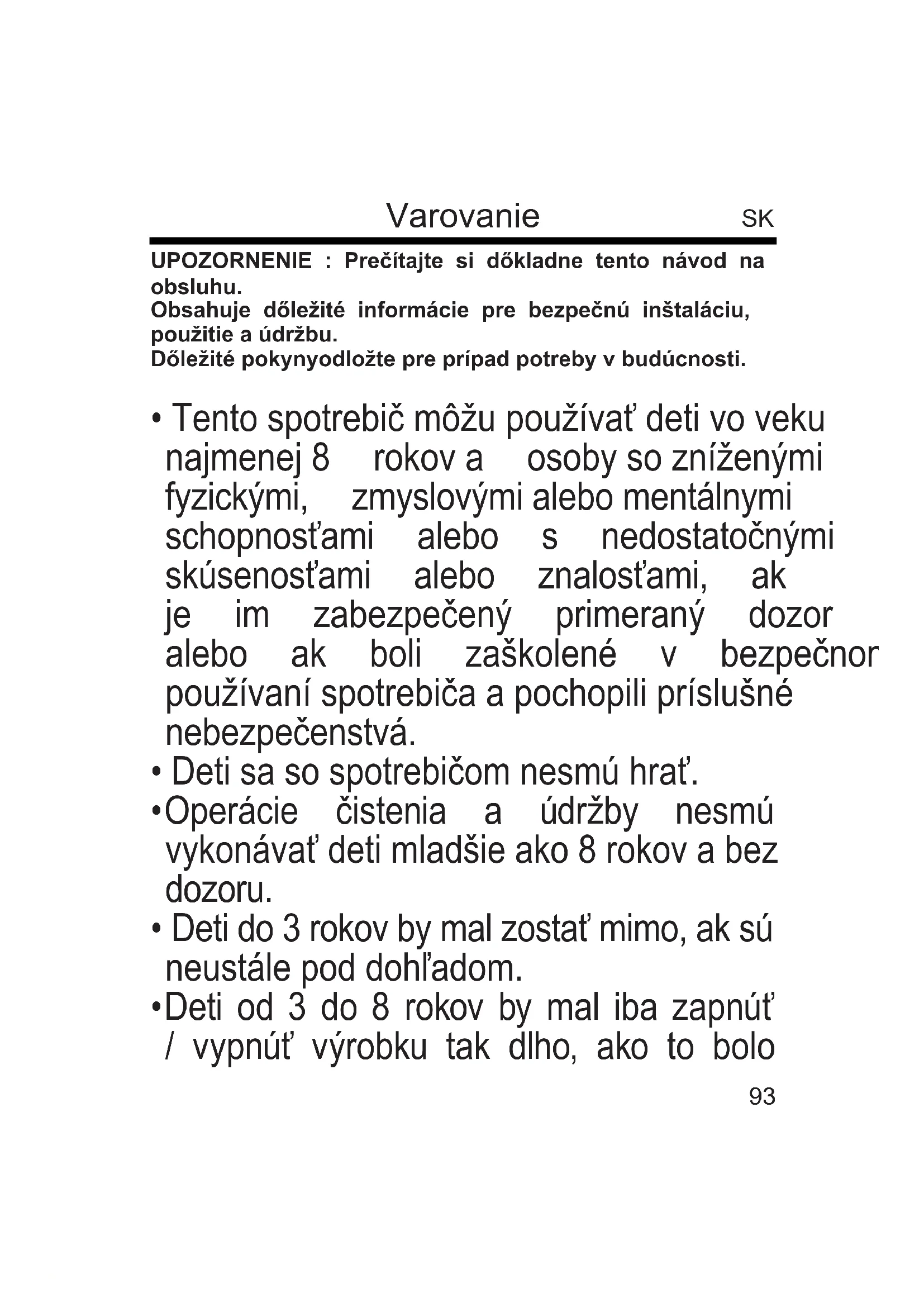 - Detiod3do8rokovbynemalihopripojte, upraviť alebo čistenie spotrebiča alebo vykonaťbežnúúdržbu.