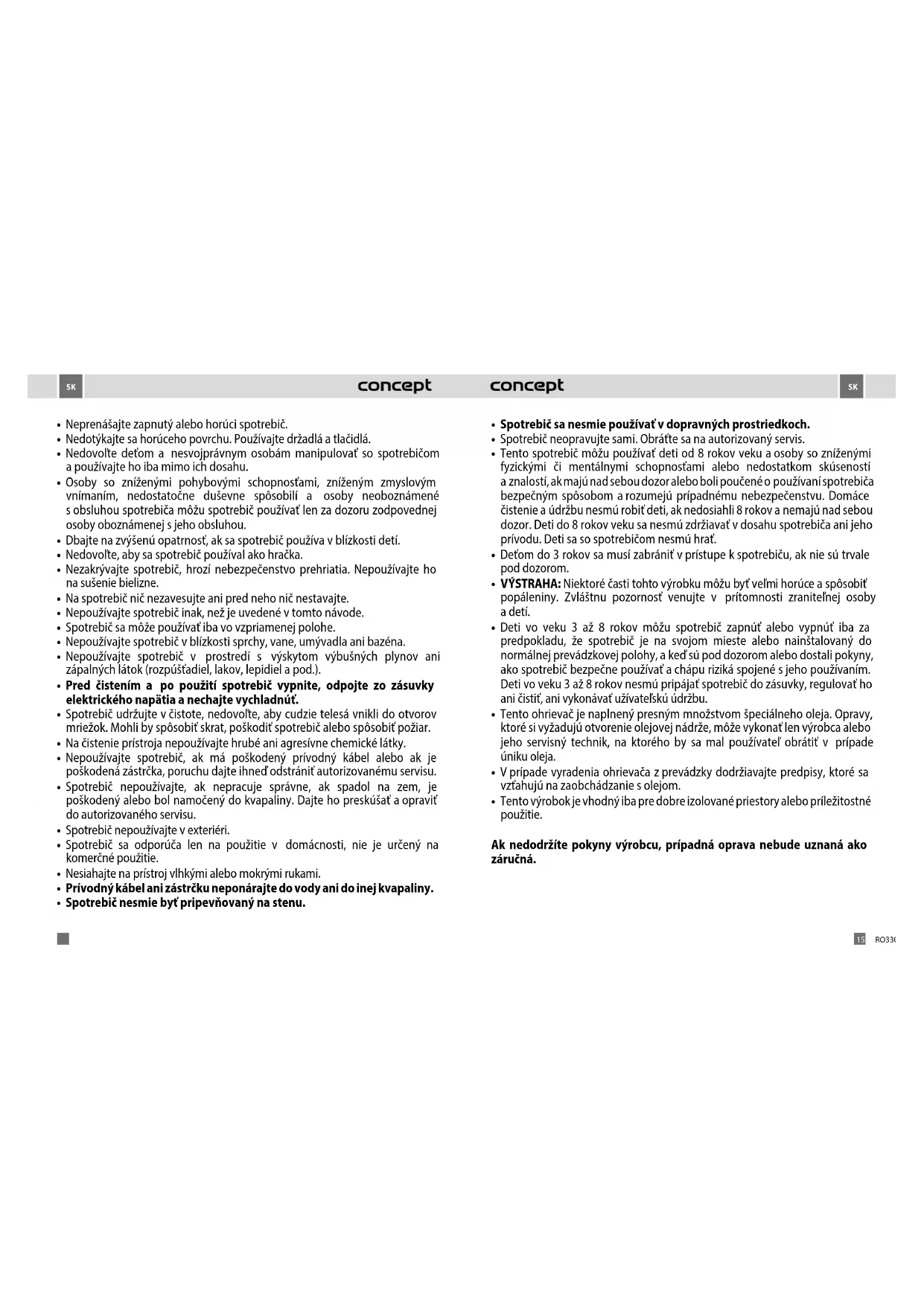 RO 3107, RO 3109, RO 3111 ĎakujemeVám,žestesizakúpilivýrobokznačkyConceptaprajemeVám,abystebolisnašímvýrobkomspokojnípo celúdobujehopoužívania. Predprvýmpoužitímsipreštudujtepozornecelýnávodnaobsluhuapotomsihouschovajte.Zabezpečte,abyajostatné osoby,ktorébudúsvýrobkommanipulovať,bolioboznámenéstýmtonávodom. POĎAKOVANIE DÔLEŽITÉ BEZPEČNOSTNÉ UPOZORNENIA: