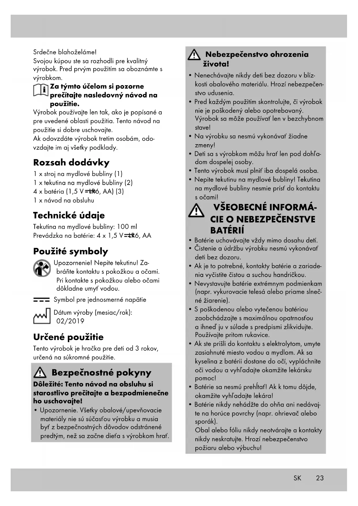 - Batérie nikdy nehádžte do ohňa ani nedávaj- te na horúce povrchy (napr. ohrievač alebo sporák). Obal alebo fóliu nikdy neotvárajte a kontakty nikdy neskratujte. Hrozí nebezpečenstvo požiaru alebo výbuchu!24 SK
