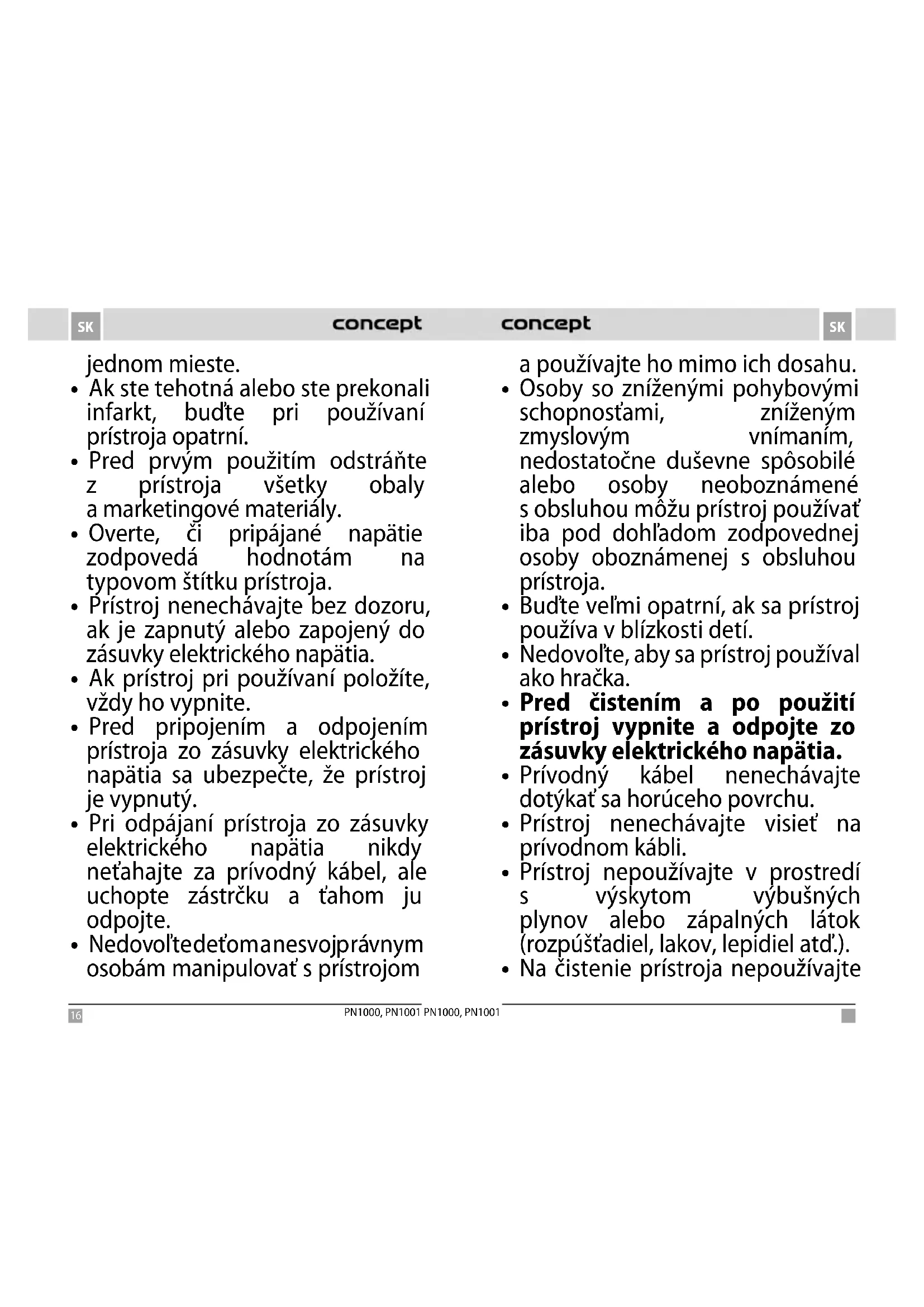 - Prístroj nepoužívajte príliš dlho na16 17 PN1000, PN1001 PN1000, PN1001 SKSK jednom mieste.