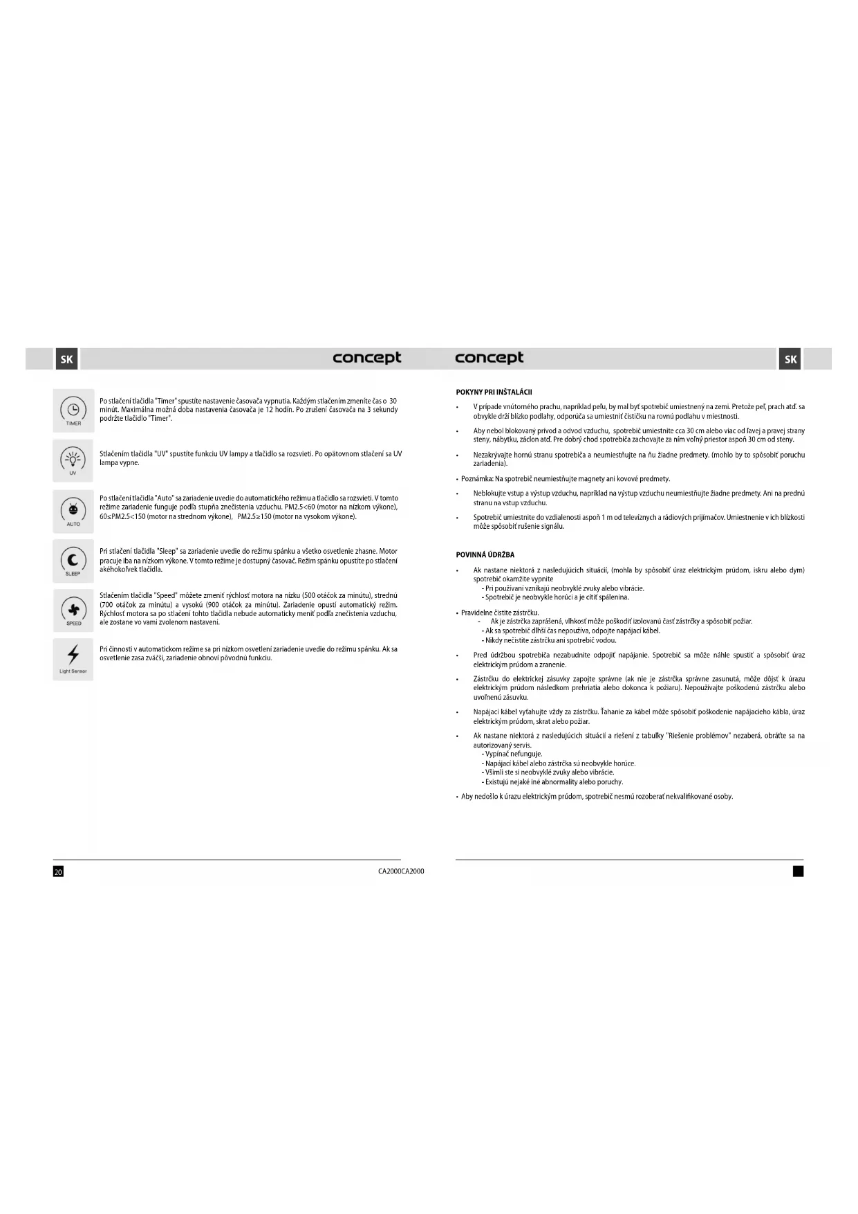 NÁVOD NA OBSLUHU Perfect Air CA2000 Concept
