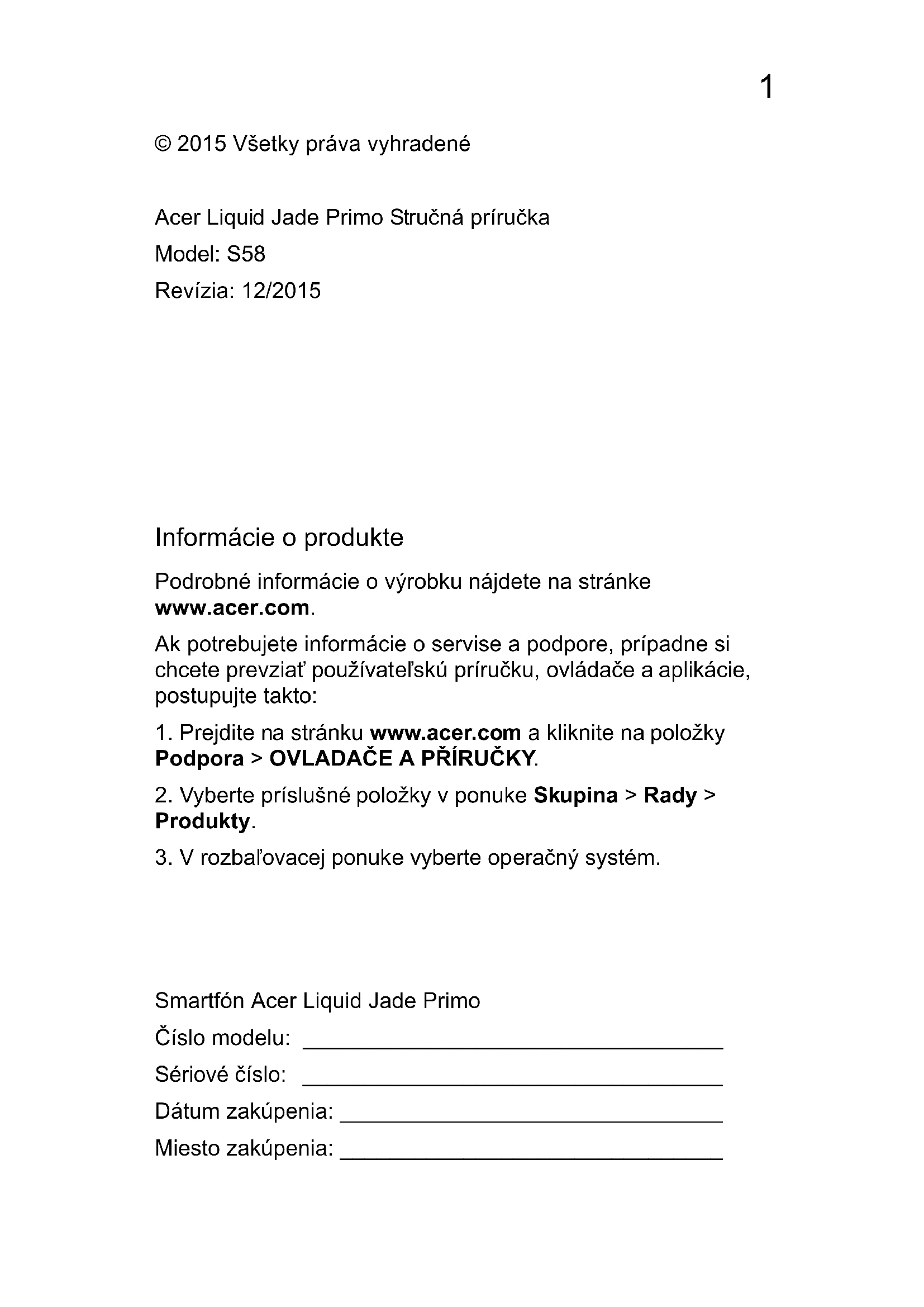 NÁVOD NA OBSLUHU Liquid Jade Primo S58 ACER