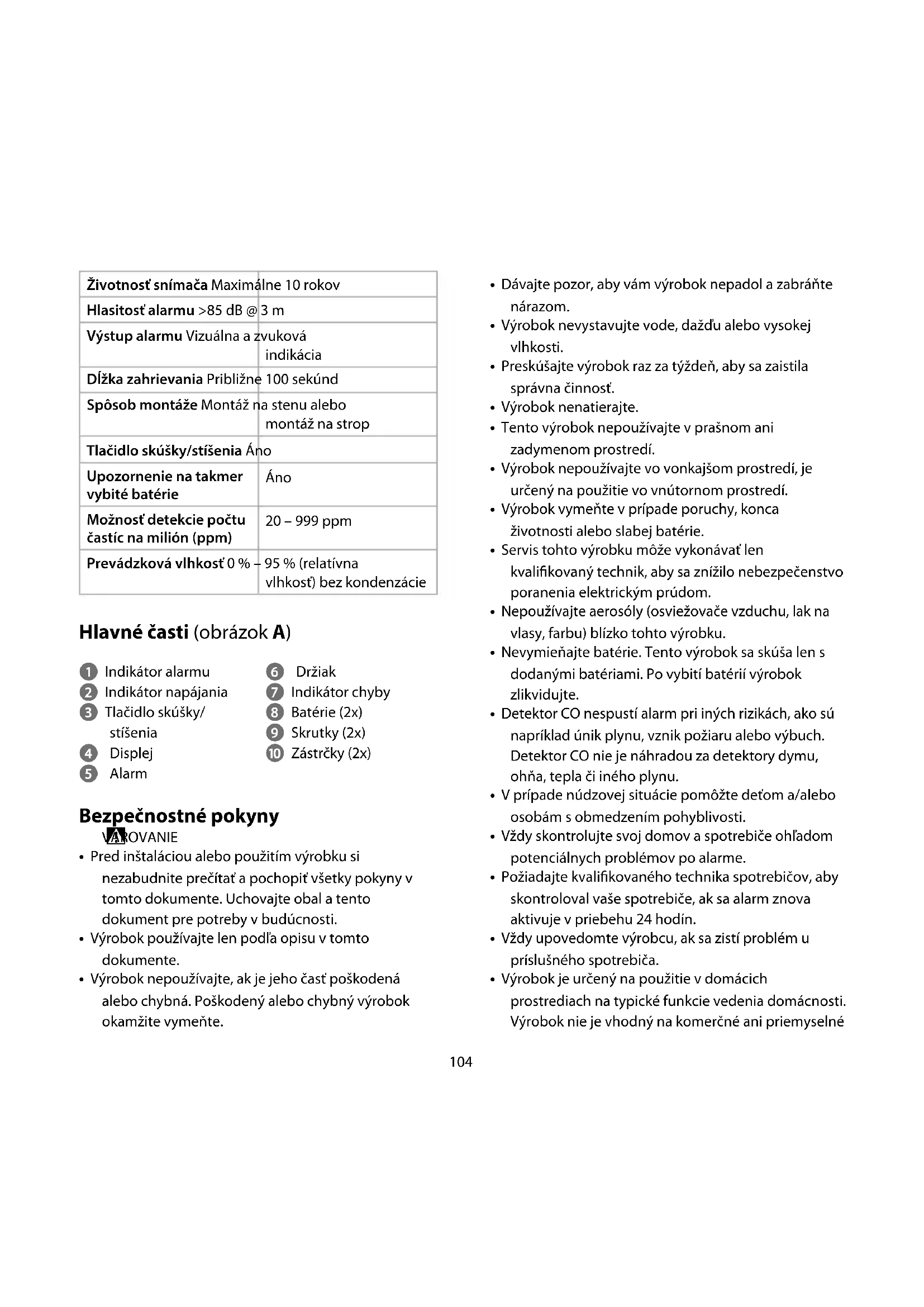 Tento výrobok je určený na ochranu používateľov pred akútnymi účinkami otravy CO. Výrobok nezaisťuje úplnú ochranu pre osoby so zdravotnými problémami.107 Inštalácia batérií (obrázok B)