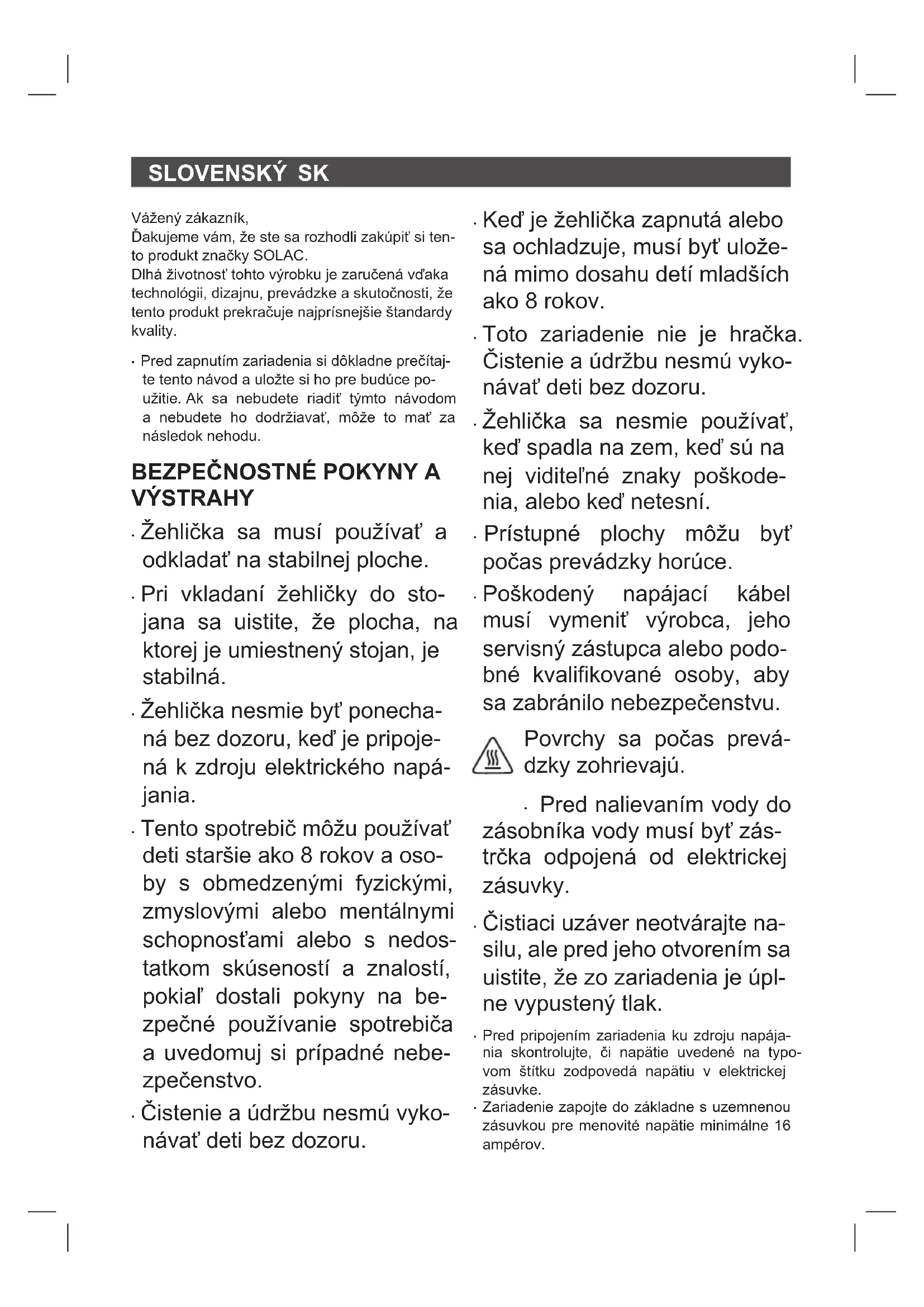 - Nedotýkajte sa horúcich častí zariadenia, pre- tože môže dôjsť k vážnym popáleninám POUŽÍVANIE A STAROSTLIVOSŤ: