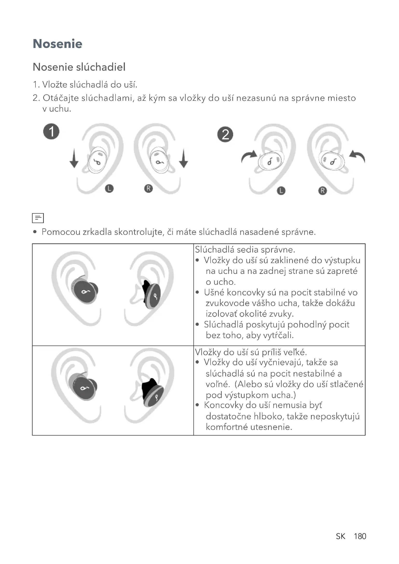 - Koncovky do uší nemusia byť dostatočne hlboko, takže neposkytujú komfortné utesnenie.181 SK Vložky do uší sú príliš malé.