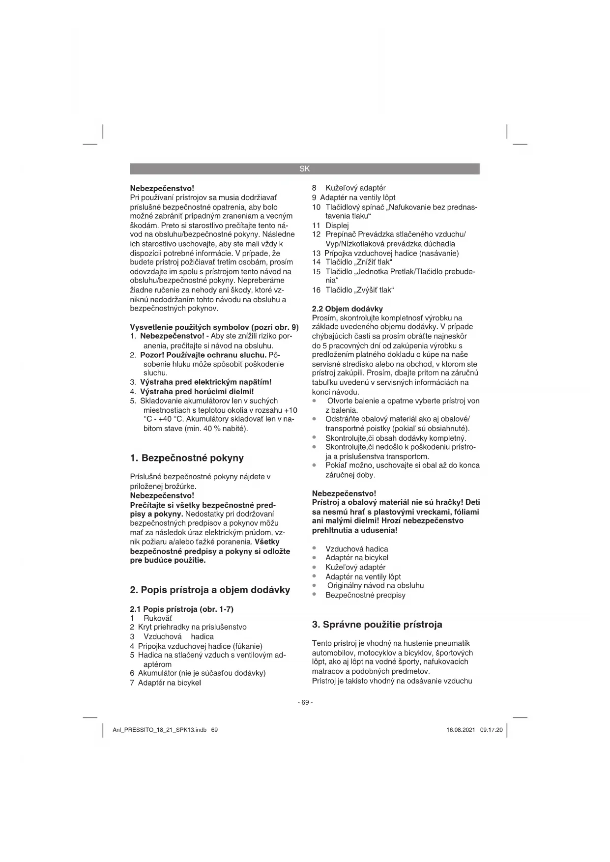 - Varovanie! Tento pristroj nie je kalibrovany! Po napljeni skontrolujte napriklad na Čerpacej stanici, Či tlak v pneumatikách zodpovedá kalibrovanej hodnote.