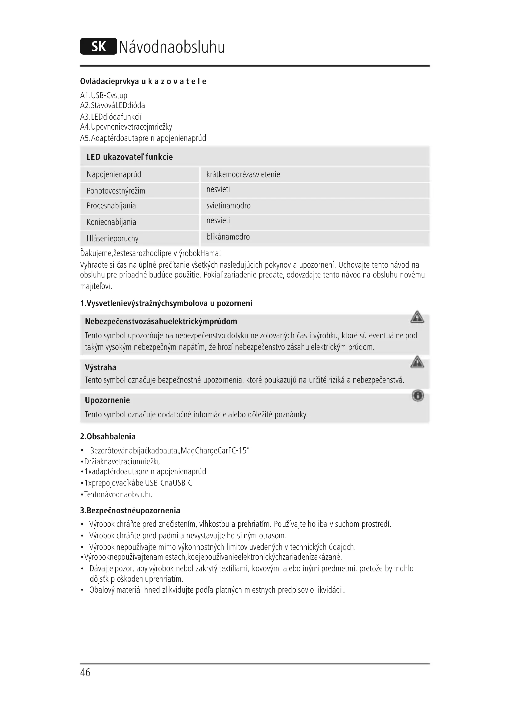 Nájdite návod k zariadeniu zdarma MagCharge Car FC15 HAMA vo formáte PDF.